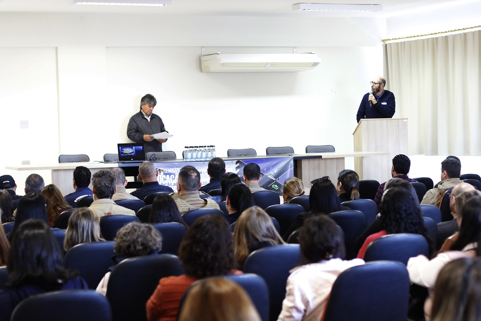 Inserida na programação da Semana Nacional do Trânsito, que acontece em todo o Brasil de 18 a 25 de setembro (25 - Dia Nacional do Trânsito), com o lema “Desacelere. Seu bem maior é a vida”, ao estimular motoristas, ciclistas e pedestres a adotarem atitudes responsáveis no dia a dia em sociedade, a Prefeitura de Lages, por intermédio da Diretoria de Trânsito (Diretran), realizou na quarta-feira (24 de setembro) o 4º Seminário de Educação de Trânsito, no Centro de Ciências Agroveterinárias (CAV), da Universidade do Estado de Santa Catarina (Udesc). O encontro, direcionado a gestores da rede pública de ensino, reuniu especialistas de diferentes áreas para o debate sobre estratégias de prevenção de acidentes e promoção de um trânsito mais seguro.