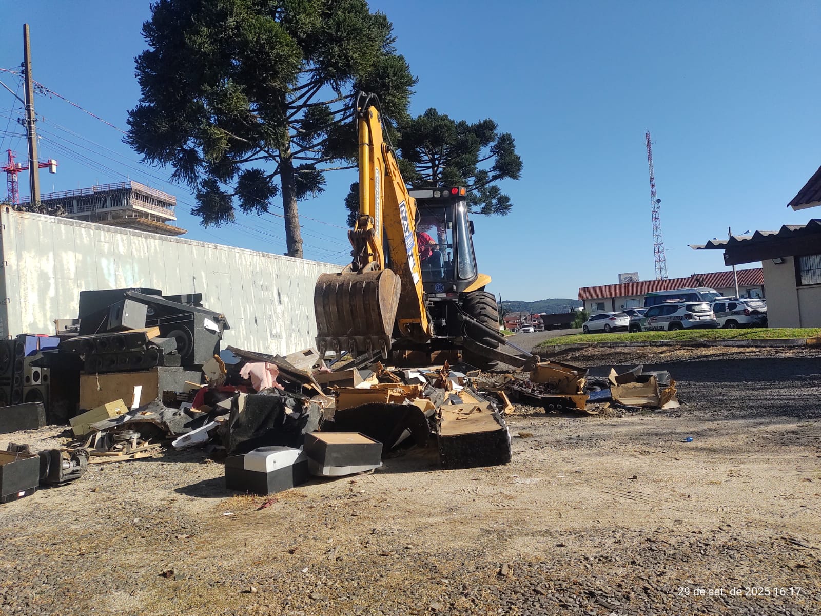 A Secretaria de Serviços Públicos/Prefeitura de Lages participou de uma ação em apoio à Polícia Militar de Santa Catarina (PMSC) para a destruição de materiais apreendidos em operações realizadas pela corporação. Iniciativa orientada pela prefeita Carmen Zanotto, com o objetivo de assegurar a destinação correta dos objetos, sem riscos de reutilização e sem causar prejuízos ao meio ambiente.