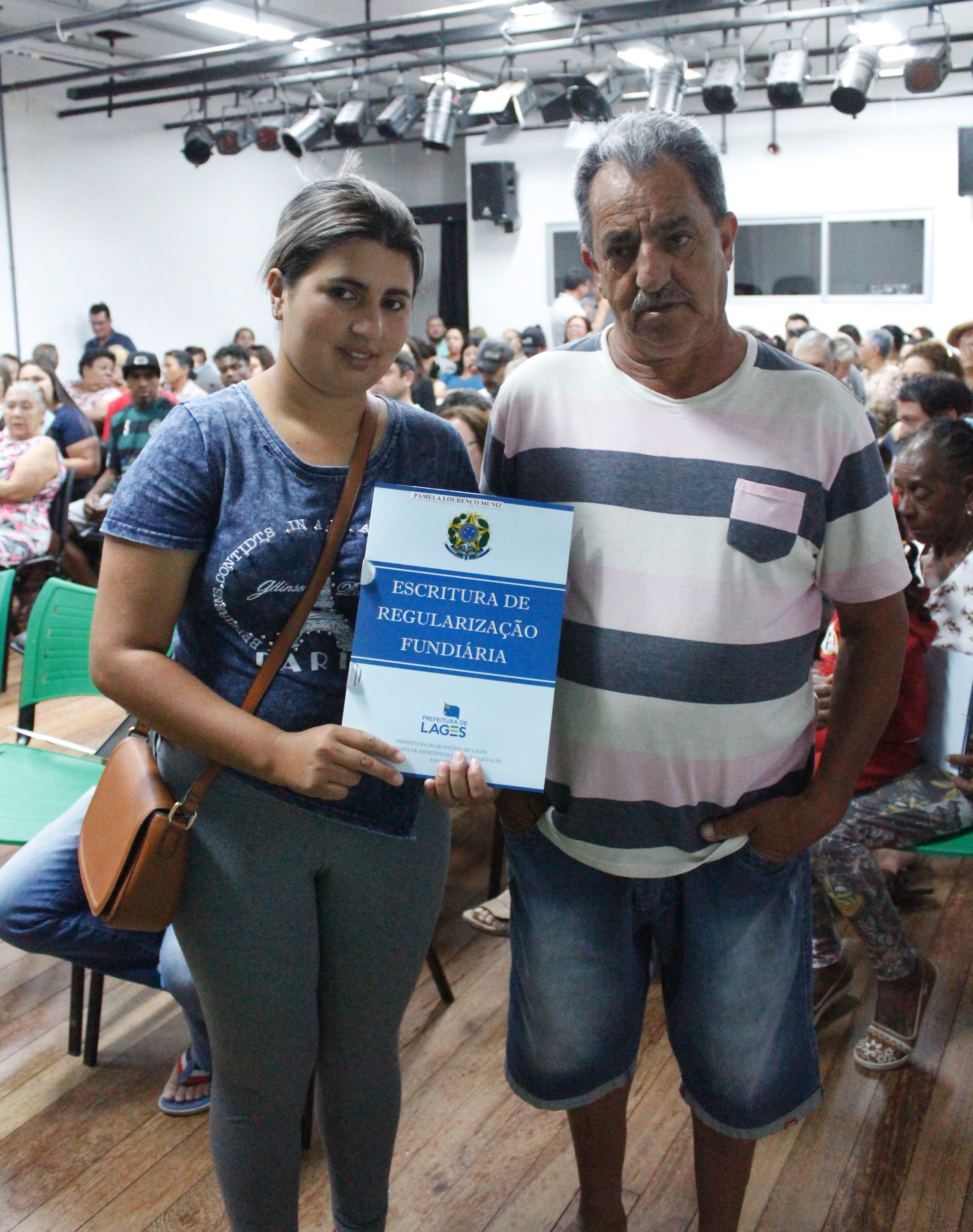 Aos 27 anos, Pâmela Lourenço Muniz, dona de casa, assinou a escritura do terreno em seu nome, sobre o qual está a casa de seus pais, com quem irá morar dentro dos próximos dias. Ela e o pai, João Maria Muniz, e a mãe Janete Aparecida Muniz, estarão mais próximos e Pâmela, assim, se livrará dos R$ 100 de aluguel pagos para que cuidasse da moradia de outra pessoa. “Eu moro lá há uns 15 anos, agora me sinto mais aliviado e feliz. Mais para frente dá para a gente pensar em aumentar a casa, investir. Documento na mão é garantia de posse, sim”, confessa o aposentado do serviço em pomares, João Maria. Sua esposa é auxiliar de serviços gerais na Uniplac e é com ela que ele divide seus sonhos.