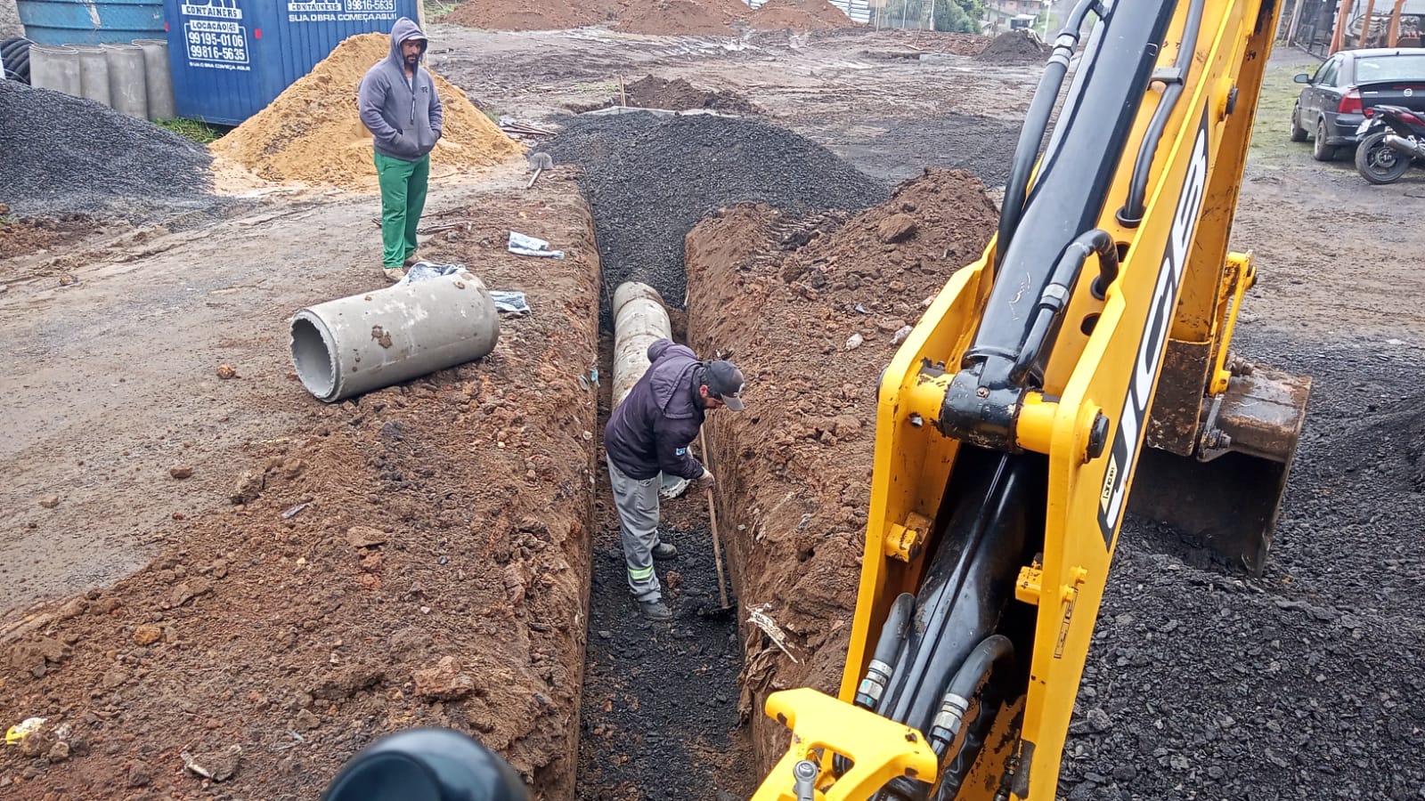 Equipes próprias da Prefeitura realizam o serviço, com previsão de término nos próximos dias. Expansão em andamento inclui novas tubulações até então inexistentes e deve ampliar capacidade de escoamento pluvial no bairro