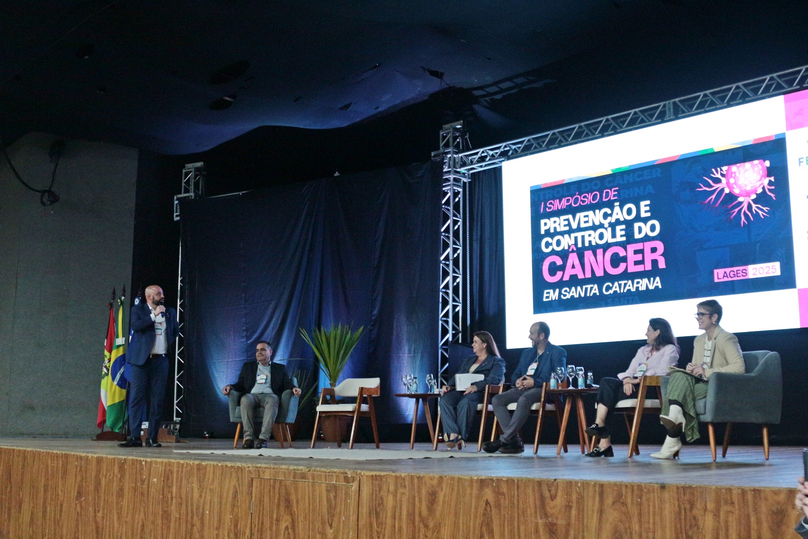 Promovido pela Federação Catarinense de Municípios (Fecam), com apoio da Secretaria de Estado da Saúde (SES/SC), do Conselho de Secretarias Municipais de Saúde (Cosems/SC) e da Prefeitura de Lages. O simpósio teve como objetivo promover a excelência no atendimento aos pacientes oncológicos, fortalecendo a integração entre os serviços e aprimorando as políticas públicas voltadas à prevenção e ao controle do câncer no Estado.