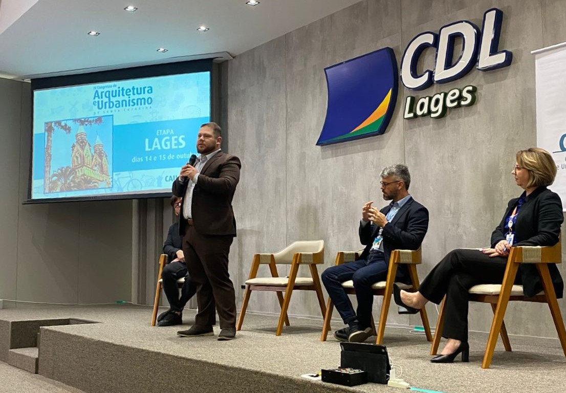 A Secretaria Municipal do Planejamento Urbano (Seplam) e Coordenação Habitacional e Regularização Fundiária de Lages participaram do IV Congresso de Arquitetura e Urbanismo de Santa Catarina, promovido pelo Conselho de Arquitetura e Urbanismo de Santa Catarina (CAU/SC). O evento foi realizado nos dias 14 e 15 de outubro no auditório da Câmara de Dirigentes Lojistas (CDL) de Lages e no Mercado Público Municipal Osvaldo Uncini, e reuniu profissionais, estudantes e gestores públicos em torno de debates sobre habitação de interesse social, mobilidade urbana, planejamento territorial, patrimônio cultural e sustentabilidade.