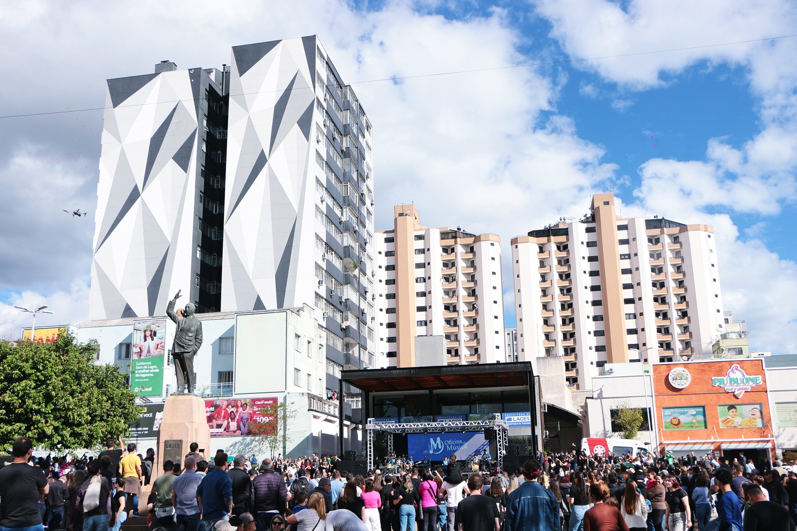 O som das baquetas tomou conta do calçadão central de Lages na tarde deste domingo (19 de outubro), durante a realização do Gralha Drum – Orquestra de Baterias 2025. O evento, realizado na Praça João Costa, foi um verdadeiro sucesso, reunindo crianças, jovens e adultos em uma grande celebração musical que encantou o público e movimentou o centro da cidade.