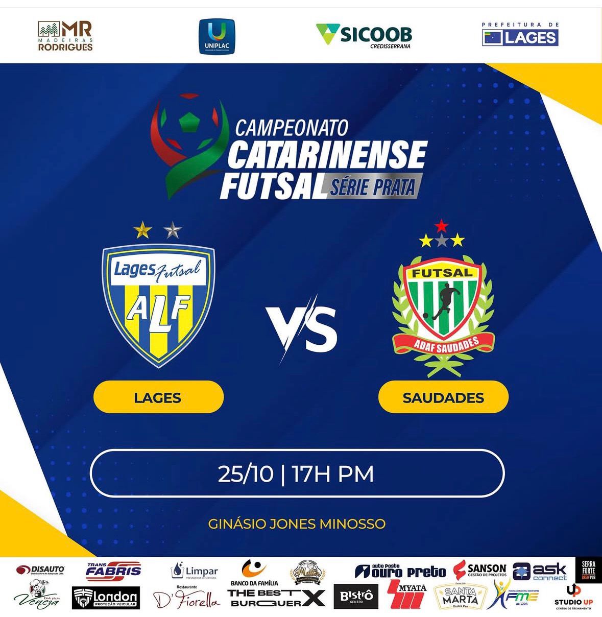 O Lages Futsal foi superado pela ADAF Saudades por 6 a 1 no jogo de ida das quartas de final do Campeonato Catarinense Série Prata, disputado no último sábado (18), no Ginásio Theobaldo Ross, em Saudades. Agora, a equipe lageana decide a vaga em casa, contando com o apoio da torcida para buscar a classificação às semifinais.