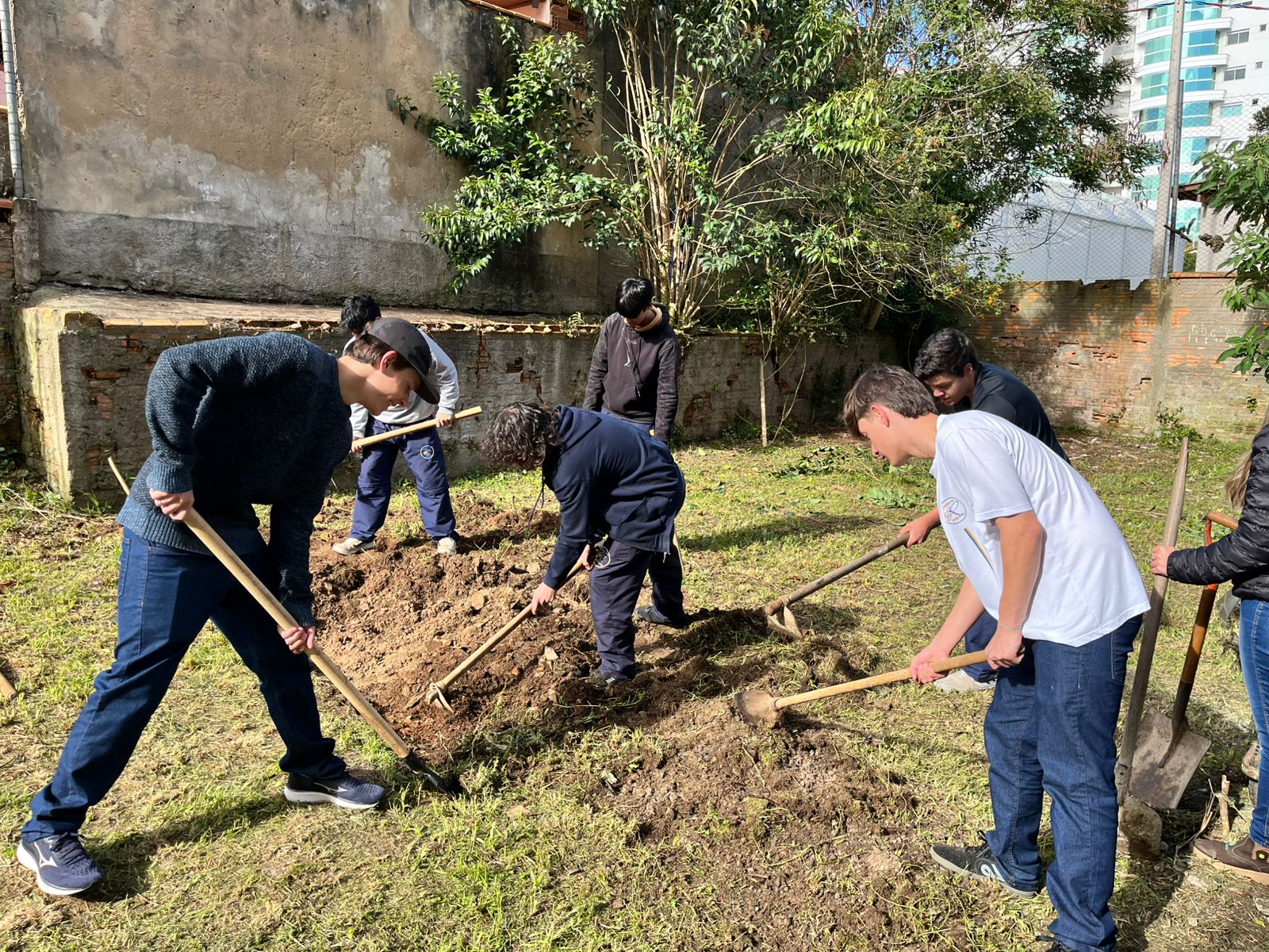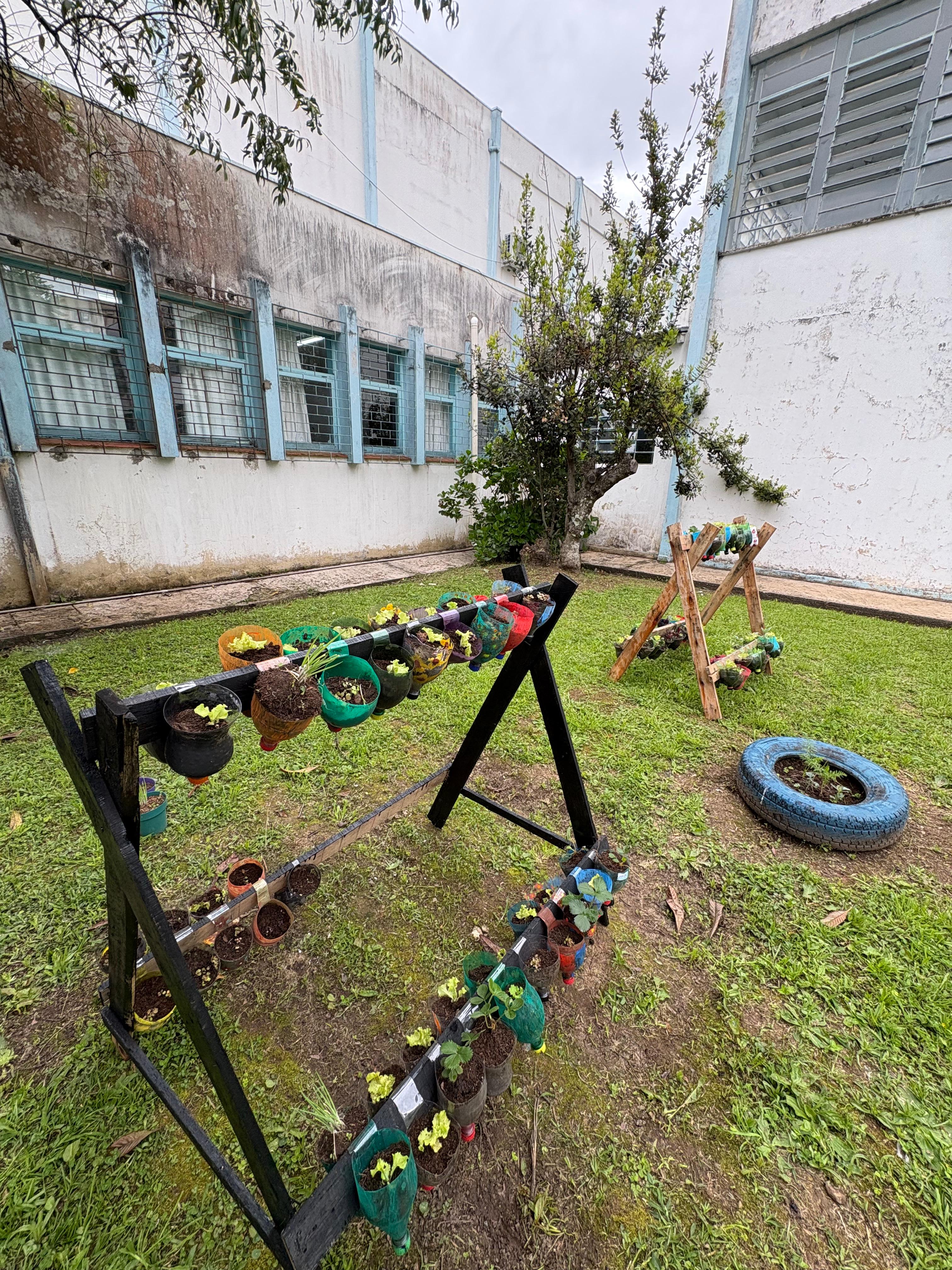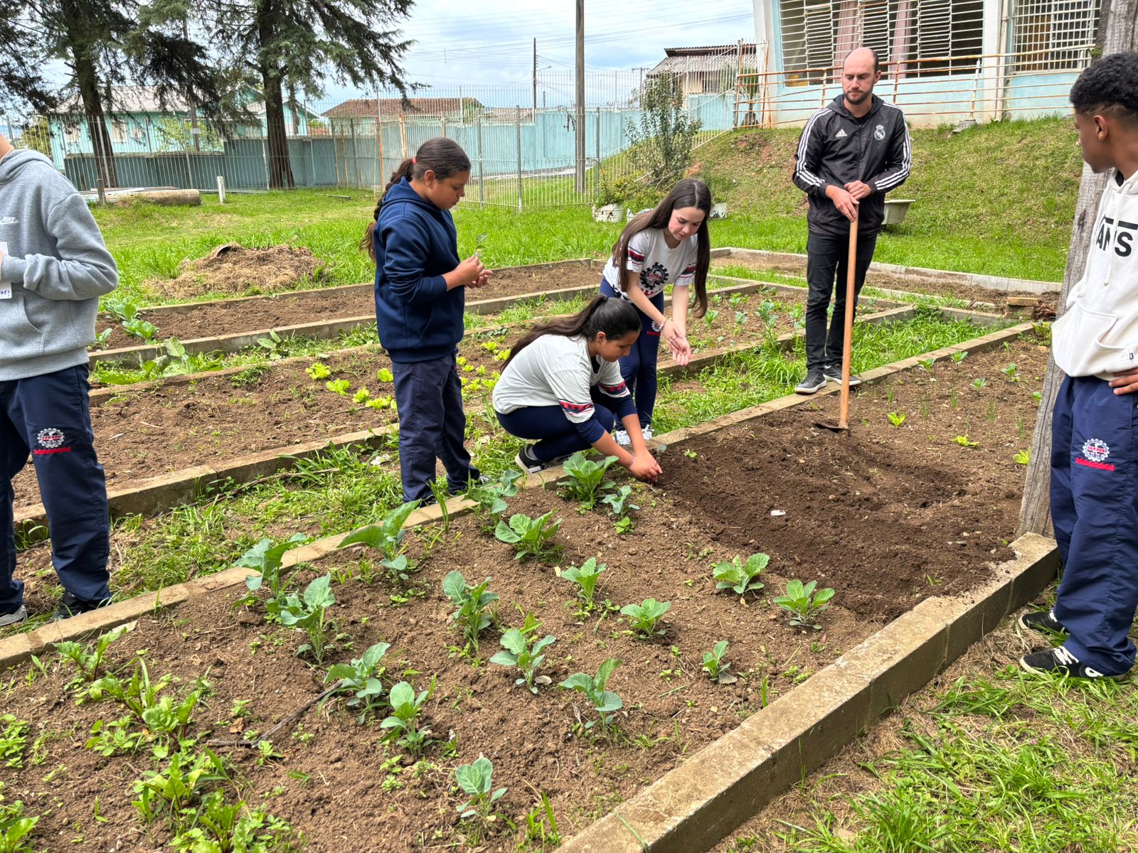 As hortas escolares são cultivadas com apoio técnico de profissionais do Horto Municipal