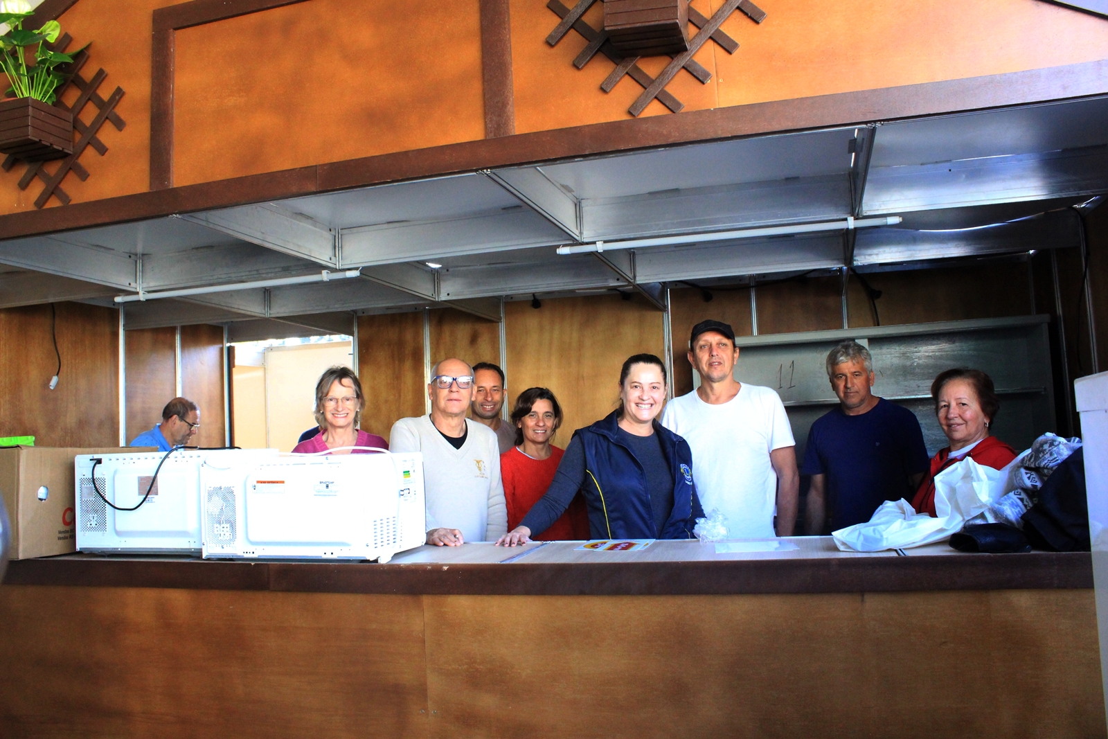 O trabalho também começou cedo para a equipe do Lions Clube, entidade que participa fielmente do Recanto desde sua primeira edição. Com aproximadamente15 voluntários, sob o comando da presidente da Instituição, Rosana Araújo, a barraca começa a tomar forma.