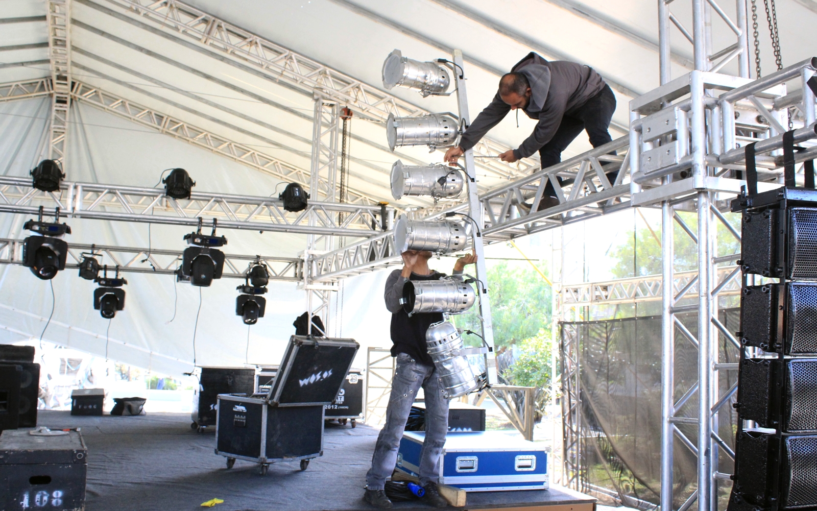 Com a estrutura toda pronta, esse é o momento de focar nos detalhes. O palco, por exemplo, está recebendo a estrutura de som, luzes e decoração para bem receber os turistas e a população lageana.