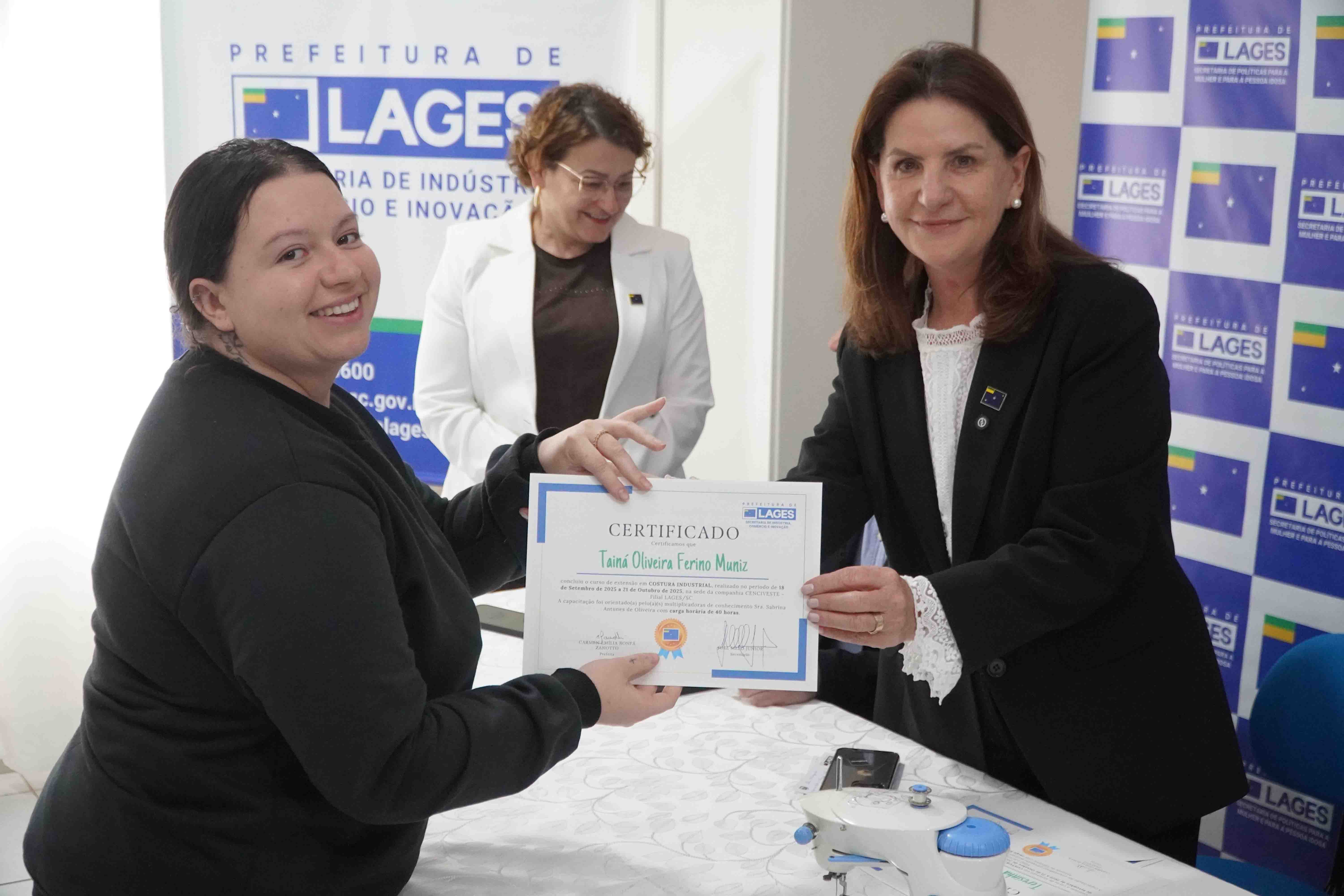 A qualificação profissional/curso de Corte e Costura concedido pela Prefeitura de Lages, por intermédio da Secretaria de Políticas para a Mulher e para a Pessoa Idosa e da Secretaria da Indústria, Comércio e Inovação, com proposição da Procuradoria Especial da Mulher, da Câmara Municipal de Vereadores, chegou a sua conclusão em uma solenidade de entrega de certificados promovida na tarde desta terça-feira (28 de outubro), no Centro de Referência de Assistência Social (Cras II), situado no bairro Centenário. Foram contempladas 13 mulheres da comunidade. O curso, totalmente gratuito, passou desde noções básicas de costura até técnicas mais avançadas, permitindo às alunas desenvolverem habilidades aplicáveis tanto em ateliês e confecções, quanto em pequenos negócios próprios. Paralelamente à fase prática, as participantes receberam orientações sobre empreendedorismo e como transformar o conhecimento em fonte de renda.