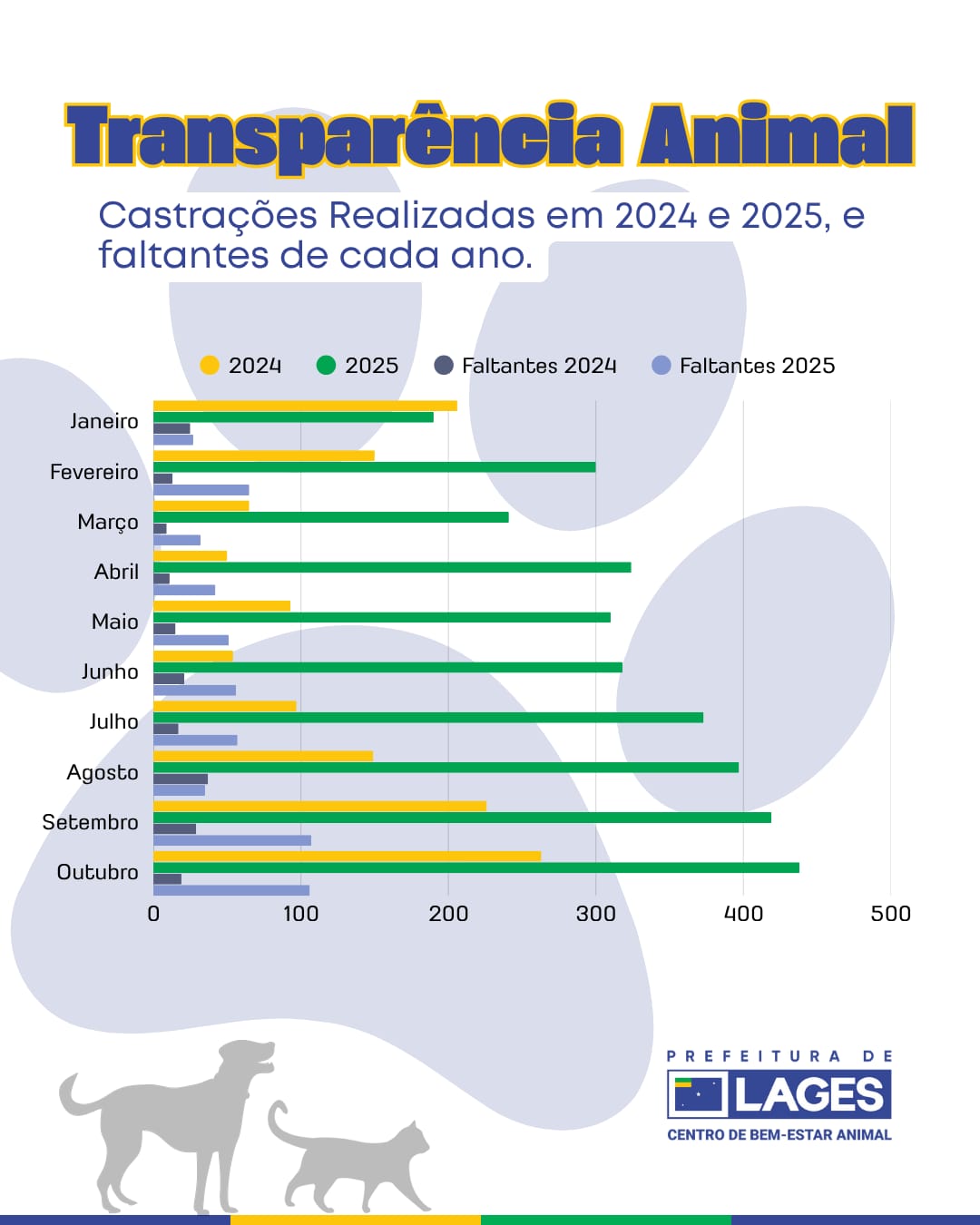 Trabalho de empenho e dedicação em que nota-se a diferença em números. Assim tem sido a rotina do Centro de Bem-Estar Animal, da prefeitura de Lages, que já registrou 3.310 castrações em 2025 e 26 adoções somente no mês de outubro