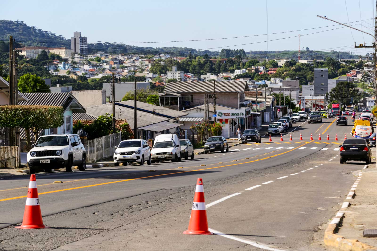 A Prefeitura de Lages, por meio da Secretaria de Planejamento Urbano (Seplam), segue intensificando os trabalhos de revitalização e pintura das sinalizações horizontais em diversas vias da cidade. Nesta semana, as equipes estão concentradas na Avenida Caldas Júnior, e a próxima etapa contemplará a Avenida Belisário Ramos, uma das principais vias de circulação da área central. As ações de pintura incluem faixas de pedestres, linhas divisórias, setas indicativas e áreas de estacionamento regulamentado.