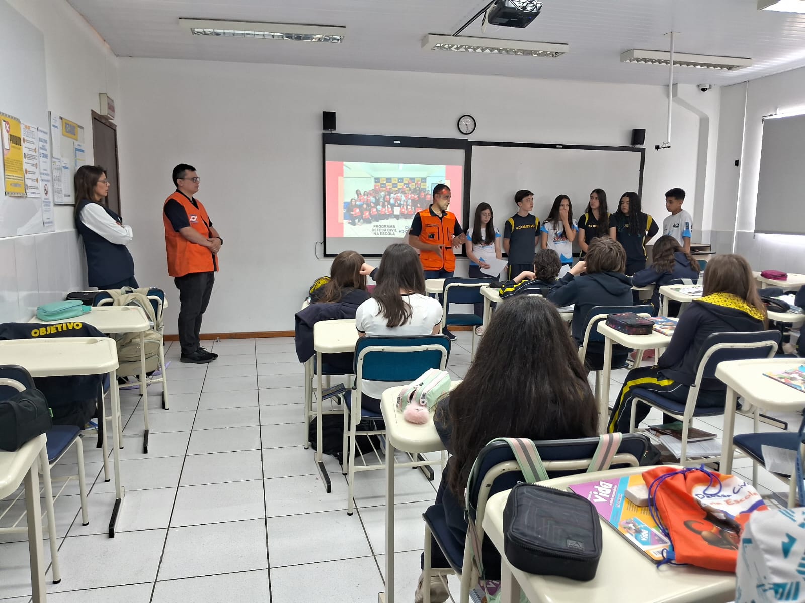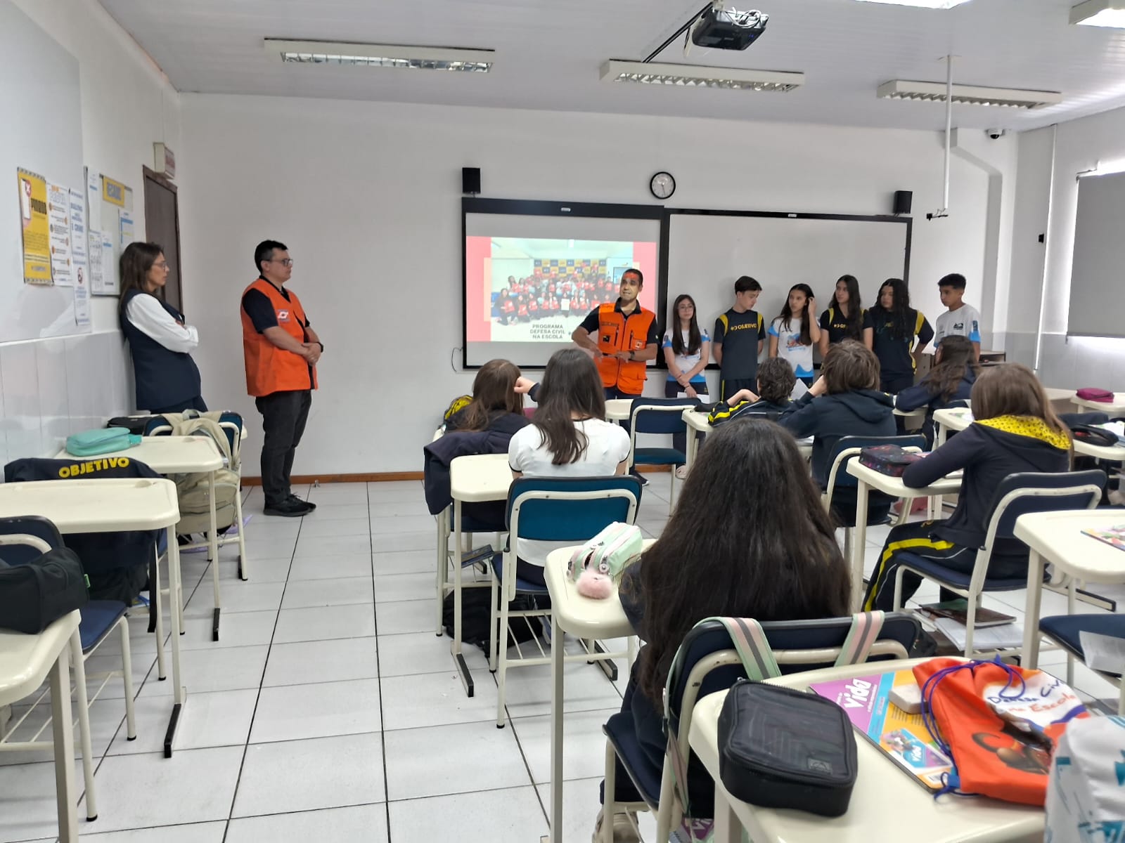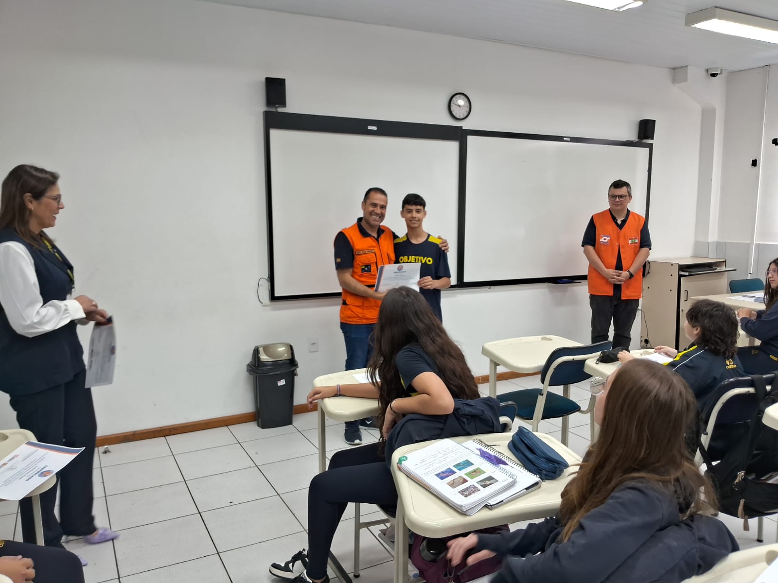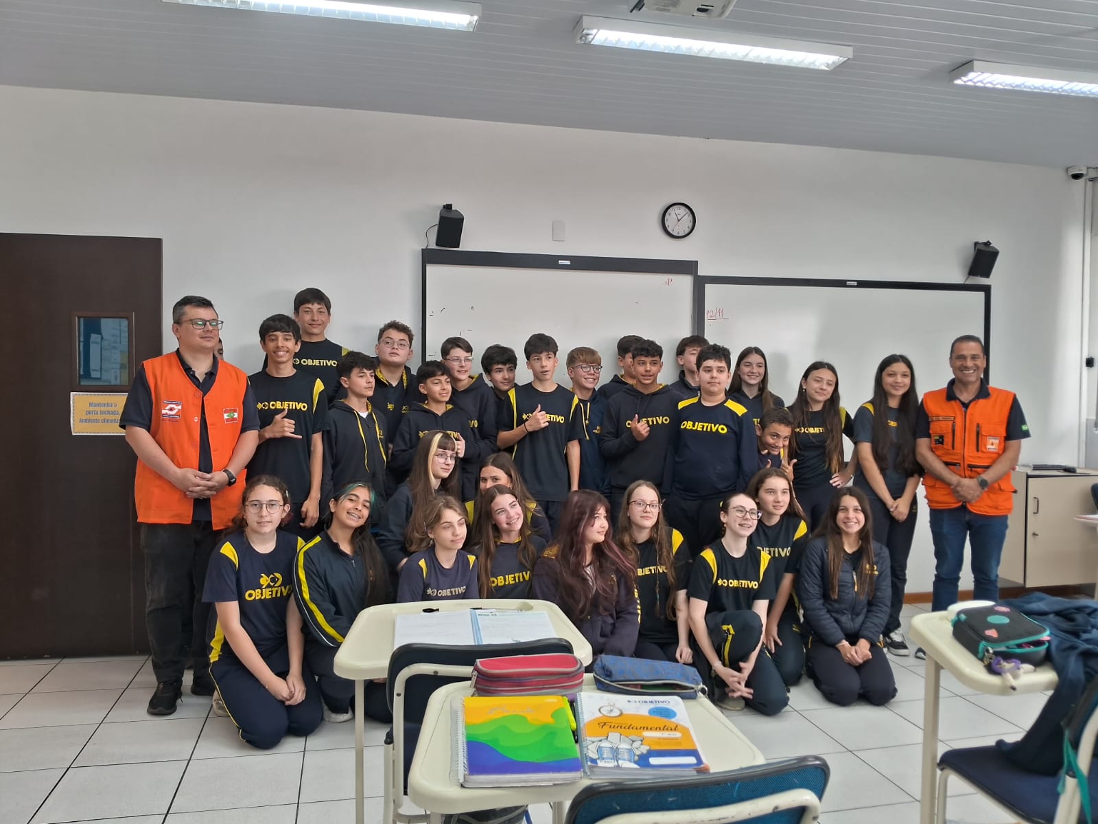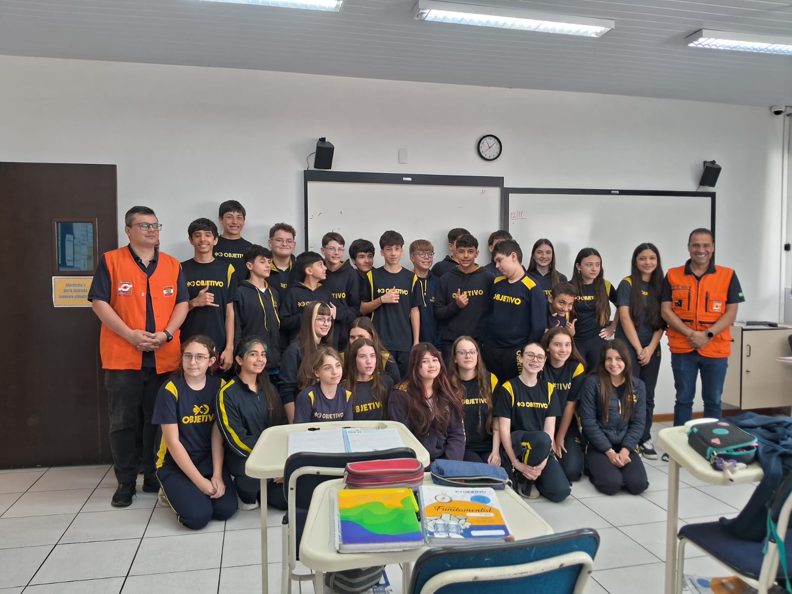 Defesa Civil nas Escolas: equipe leva conhecimento e orientações aos estudantes do Colégio Objetivo