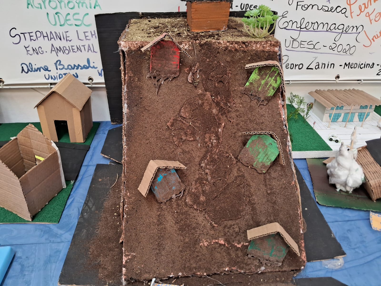 Durante o encontro os estudantes mostraram os trabalhos produzidos por meio de maquetes que retratavam áreas e risco e desastres climáticos