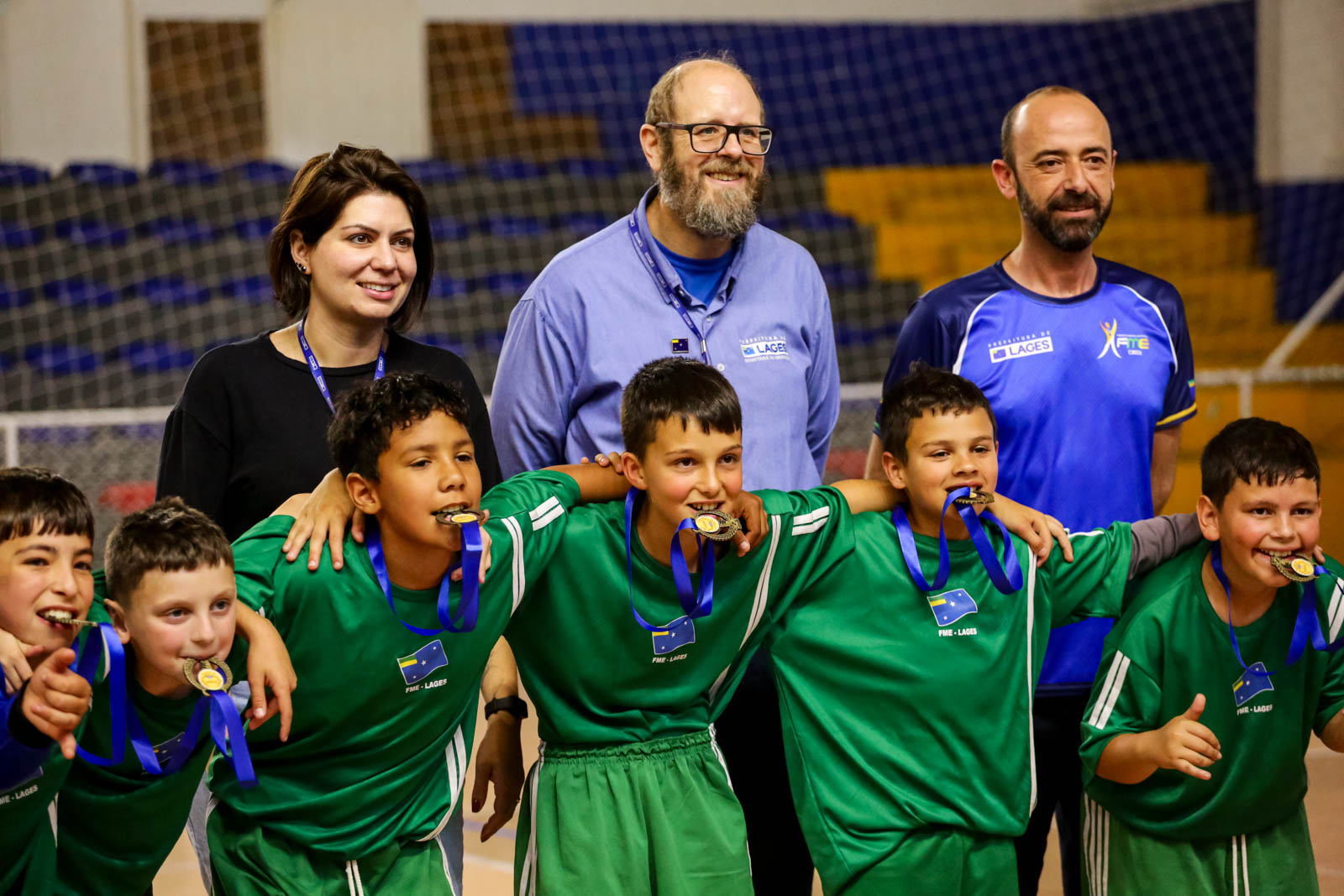 Competição com suas últimas partidas disputadas na tarde desta quinta-feira (13 de novembro), no Ginásio Ivo Silveira. Na categoria feminina, a Emeb Professor Pedro Cândido conquistou o título. Já na masculina, a campeã foi a Emeb Santa Helena
