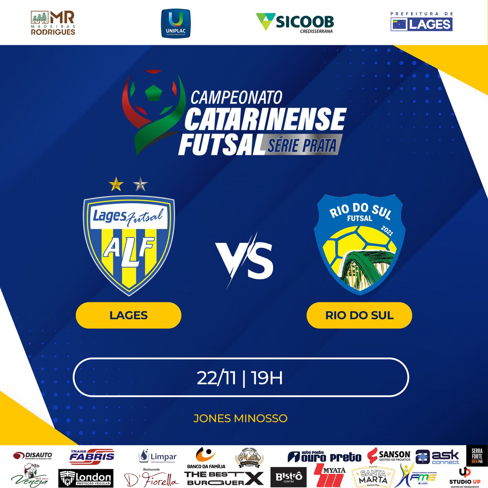 O Lages Futsal chega ao momento mais decisivo da temporada. Neste sábado (22 de novembro), às 19h, no Ginásio Jones Minosso, a equipe enfrenta o Rio do Sul pelo jogo da volta da semifinal da Série Prata do Campeonato Catarinense. A vitória mantém vivo o objetivo de conquistar o acesso e de assegurar a presença na grande final.