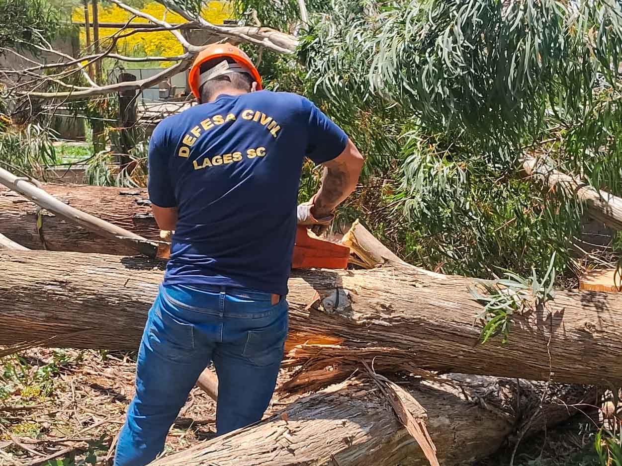 Defesa Civil de Lages faz remoção de árvores com risco de queda e mantém ações preventivas contínuas