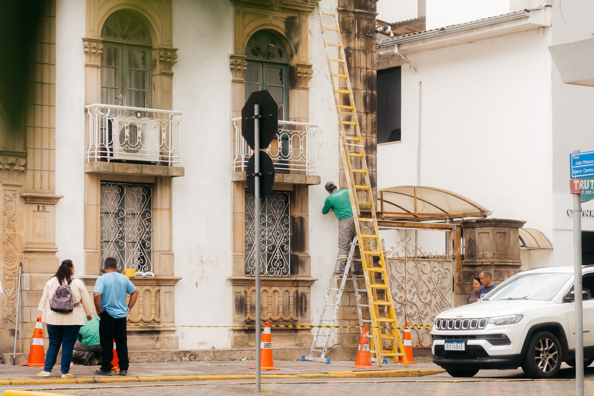 Relembre como foi a limpeza das paredes externas do prédio da Prefeitura em março