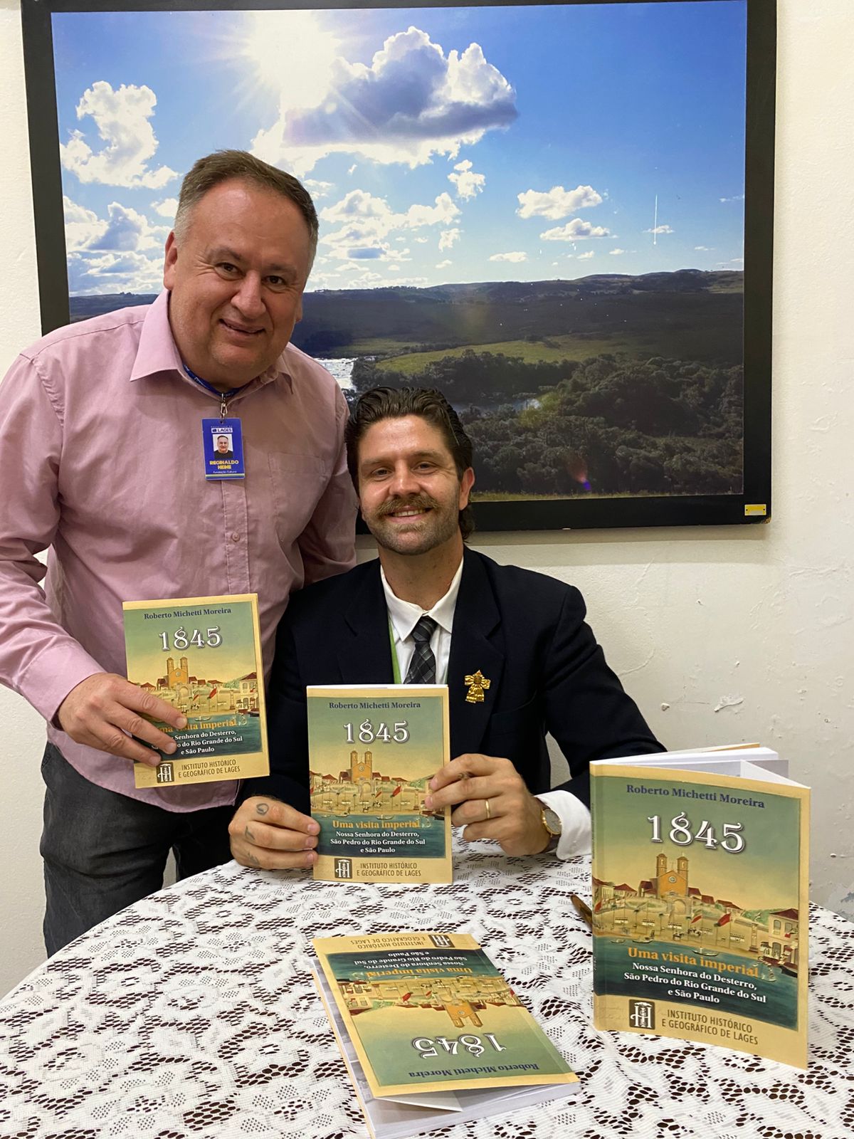 A Fundação Cultural de Lages (FCL) recebeu, na noite desta quarta-feira (26 de novembro), o escritor Roberto Michetti Moreira, para o lançamento do livro “1845 - Uma Visita Imperial”, obra que detalha a histórica viagem de Dom Pedro II à região Sul do Brasil. O evento foi prestigiado por leitores, pesquisadores, servidores públicos e admiradores da história brasileira. Durante o lançamento, o autor apresentou a obra, conversou com o público sobre o processo de pesquisa e realizou sessão de autógrafos.