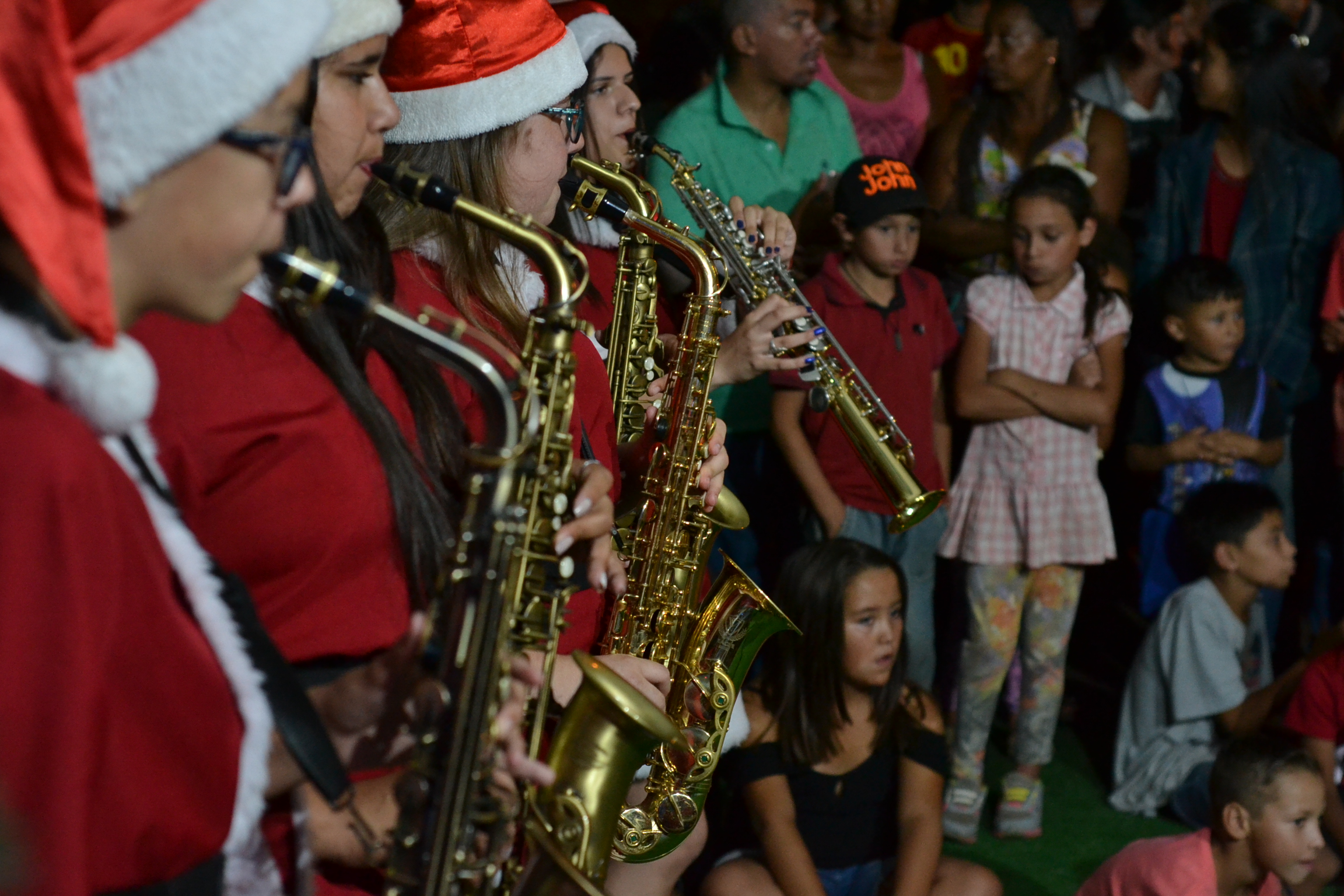 A grande expectativa do público era para a chegada do Papai Noel e sua banda. Mas para abrilhantar ainda mais a noite as apresentações do grupo Dançar Passarela, o cantor Edu Alencar e a Orquestra Soprano deram um toque especial à magia do Natal no bairro Santa Catarina.