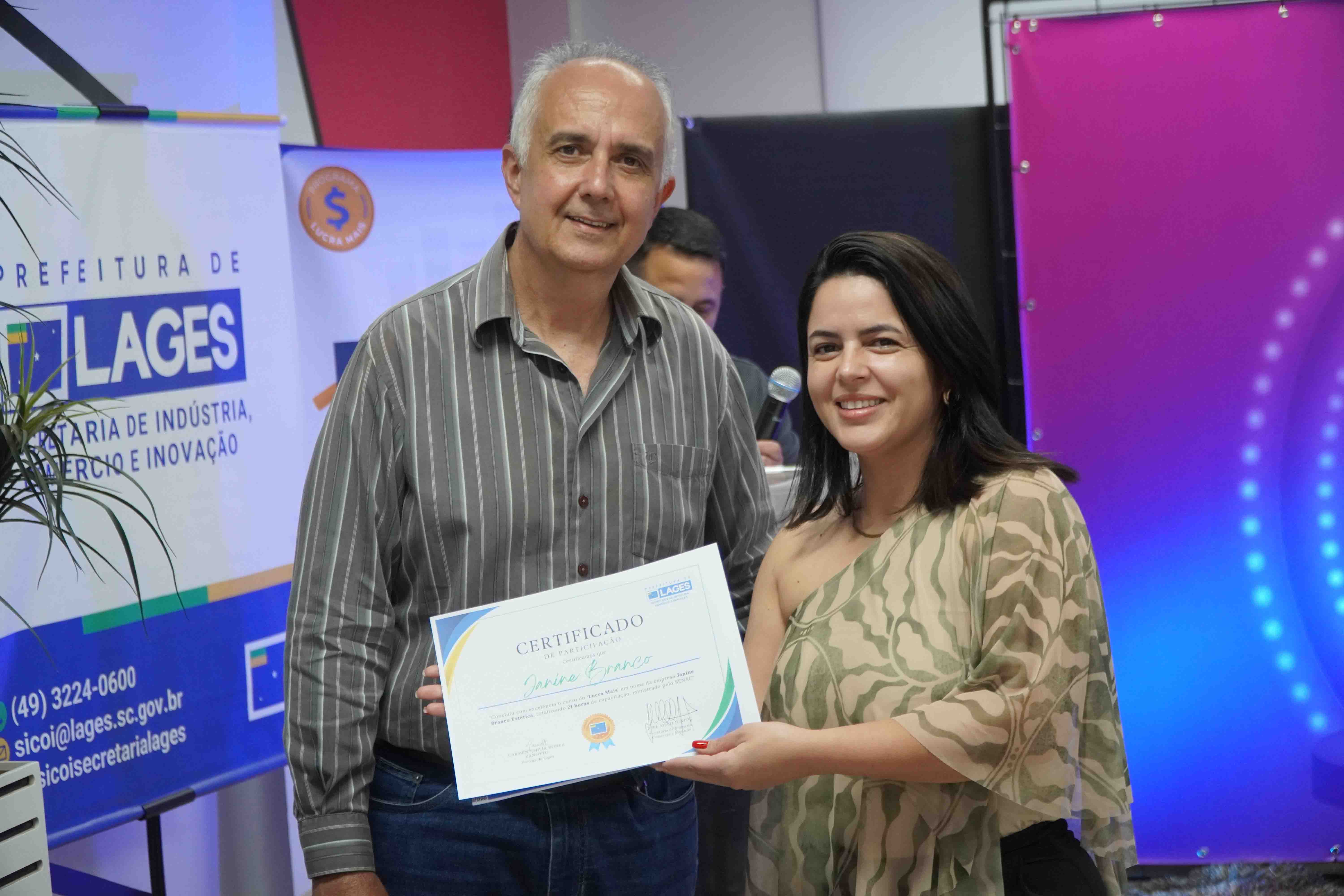 A Prefeitura de Lages, por meio da Secretaria Municipal da Indústria, Comércio e Inovação, realizou na noite desta terça-feira (2 de dezembro), no Senac, a entrega dos certificados aos participantes do Programa Lucra Mais. Ao todo, foram entregues 21 certificados, reconhecendo o empenho e a evolução dos empresários que dedicaram seus últimos meses à qualificação focada no crescimento sustentável de seus negócios.