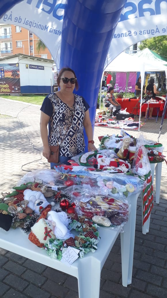 A mobilizadora social Eliane Bordin conta que este programa reúne grupos de produção de artesanato quinzenalmente nos bairros, sendo que uma equipe de monitores repassa as técnicas, ensinando e orientando na produção artesanal. “Como estamos em época de Natal, muitas das peças expostas e colocadas à venda, nesta nossa 1ª Feira de artesanato, são guirlandas e variados outros adereços natalinos. Mas temos vários outros tipos de artesanato também”, disse Eliane.