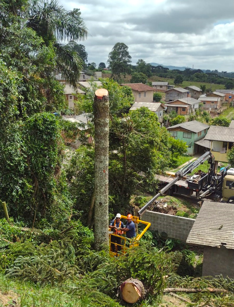 Mesmo diante da indisponibilidade de recursos operacionais próprios, a Defesa Civil Municipal, com o apoio de terceiros e a disponibilização de um caminhão munck, viabilizou a retirada da Araucária, eliminando o risco e garantindo a segurança da família. “Com base na Lei Complementar nº 428, de 2013, que autoriza a remoção de árvores em situações de risco iminente, realizamos essas supressões para evitar acidentes e consequências mais graves para a comunidade, especialmente quando envolve a segurança de uma senhora idosa. Essa é uma determinação da prefeita Carmen Zanotto, que reforça o trabalho preventivo para reduzir danos durante eventos adversos”, destaca o Sargento Ribeiro.