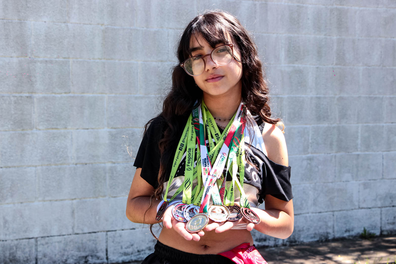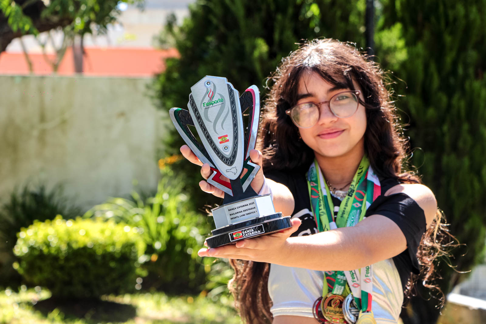 É no embalo do Street Dance e do Hip Hop que uma lageana de 12 anos, estudante da Escola Municipal de Educação Básica (Emeb) Aline Giovana Schmitt, no bairro Guarujá, gosta de se expressar e vivenciar o mundo ao seu redor. Isadora da Costa de Souza foi eleita Bailarina Destaque, na categoria Infantil, da Final Regional Centro-Oeste do Festival Escolar Dança Catarina 2025. A jovem conseguiu o feito competindo contra mais de 500 bailarinas de sua idade, no evento realizado em Lages, no mês de outubro. Sua desenvoltura no palco chamou a atenção do público presente e dos jurados que a escolheram como melhor bailarina da disputa.
