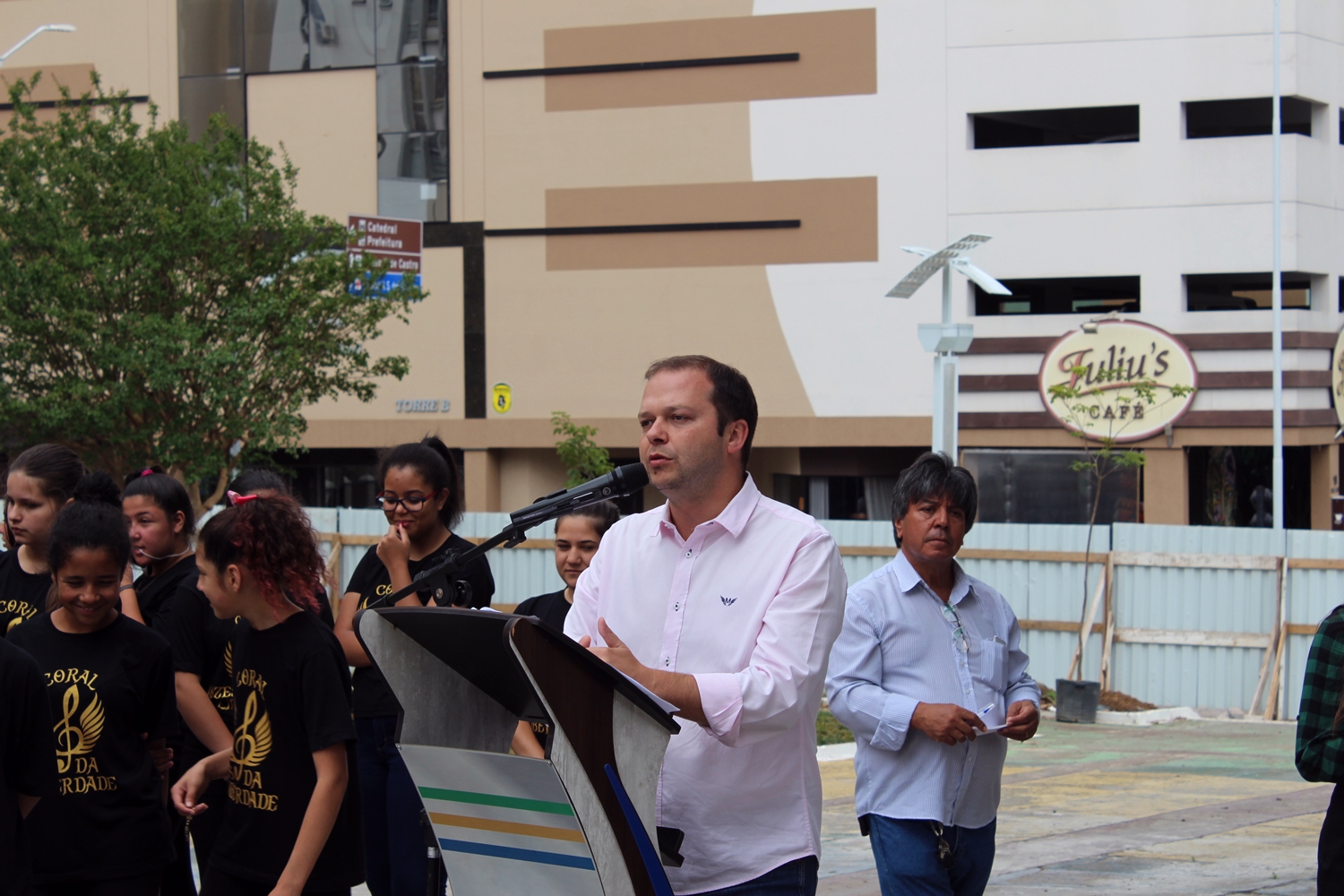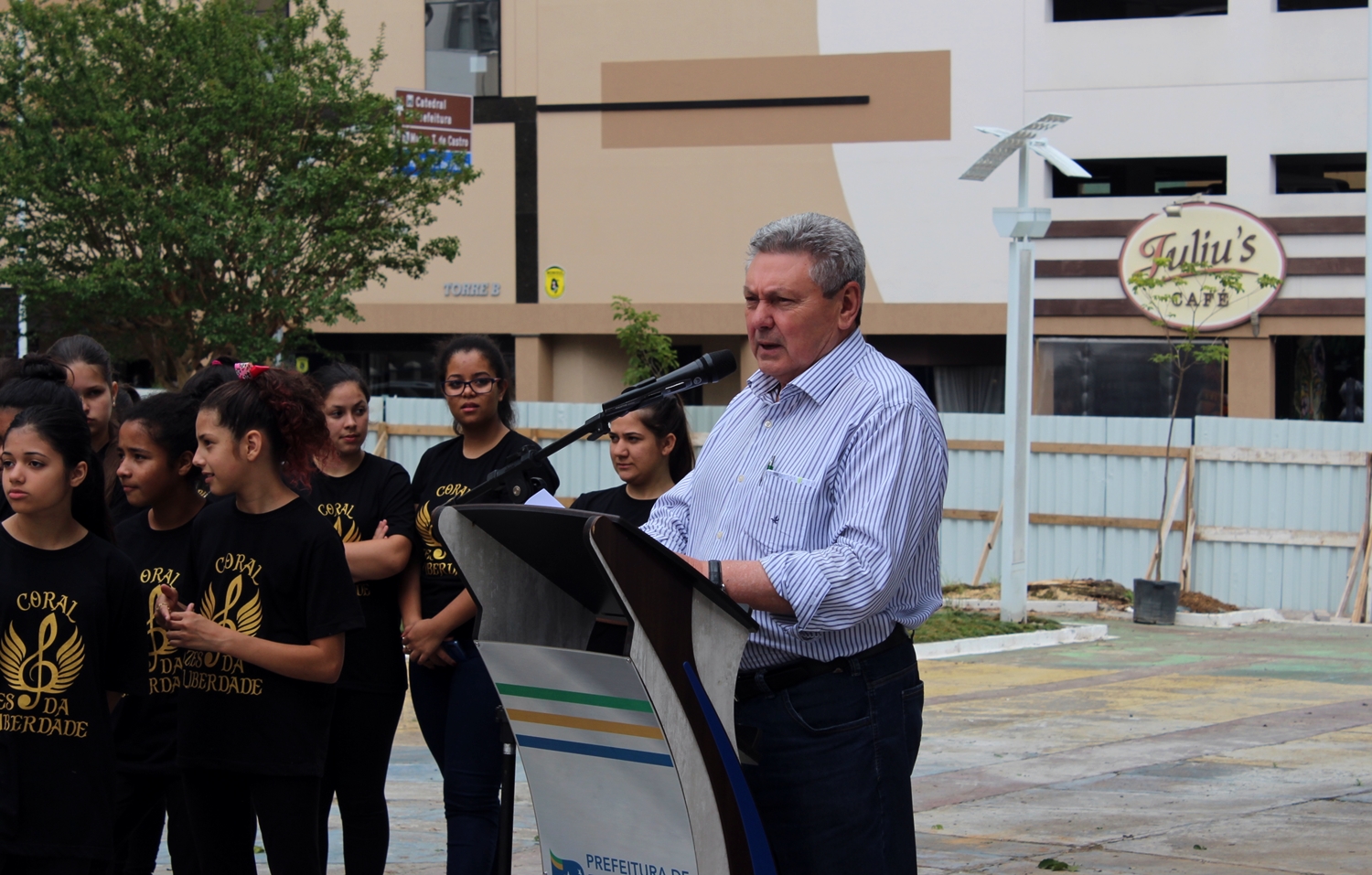 Esta declaração ocorreu durante ato oficial, realizado na praça, para o qual foram convidados crianças do Coral Vozes da Liberdade, grupo de Protetores Ambientais e a Polícia Militar Ambiental. A primeira-dama, Salete Ceron, o vice-prefeito Juliano Polese, secretários municipais e alguns vereadores também estiveram presentes neste ato que marcou o replantio de 22 novas árvores na Praça da Catedral.