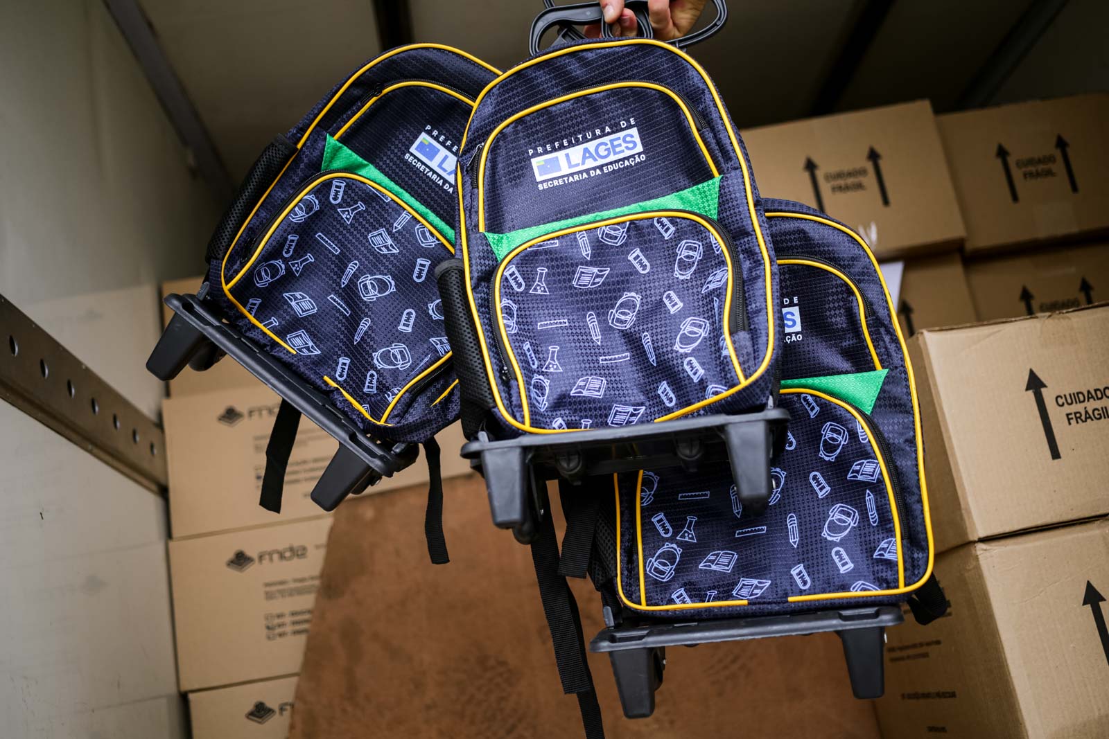 As mochilas são compostas por modelos que vão desde bolsa-maternidade até itens para Educação Infantil, Ensino Fundamental, Educação de Jovens e Adultos (EJA), Ensino Médio Itinerante e Escolas do Campo.