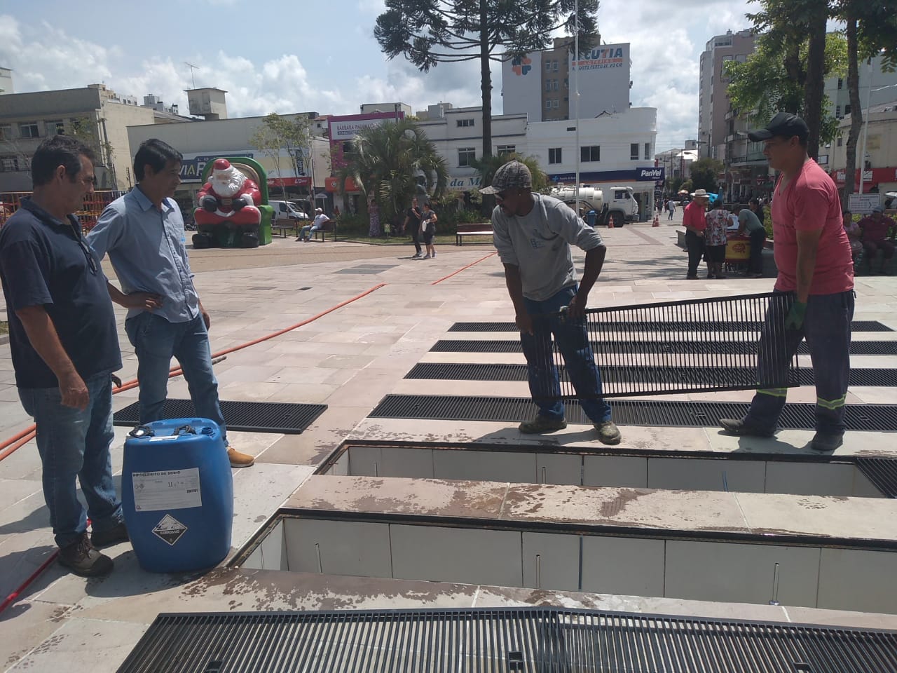 Semasa realiza manutenção no chafariz da Praça João Costa