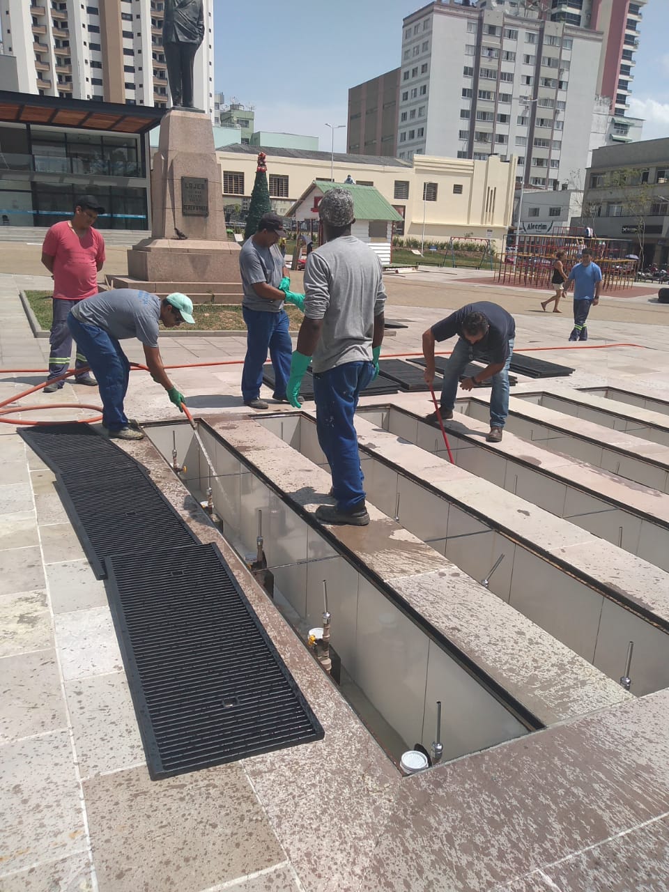Após o término dos serviços da Praça João Costa, as equipes de serviço passarão para o chafariz da Praça dos Bandeirantes, localizada na avenida Marechal Floriano, próximo à Unifacvest, e por último o chafariz do Monumento Carro de Molas, na Praça Vidal Ramos Sênior (Terminal Urbano).