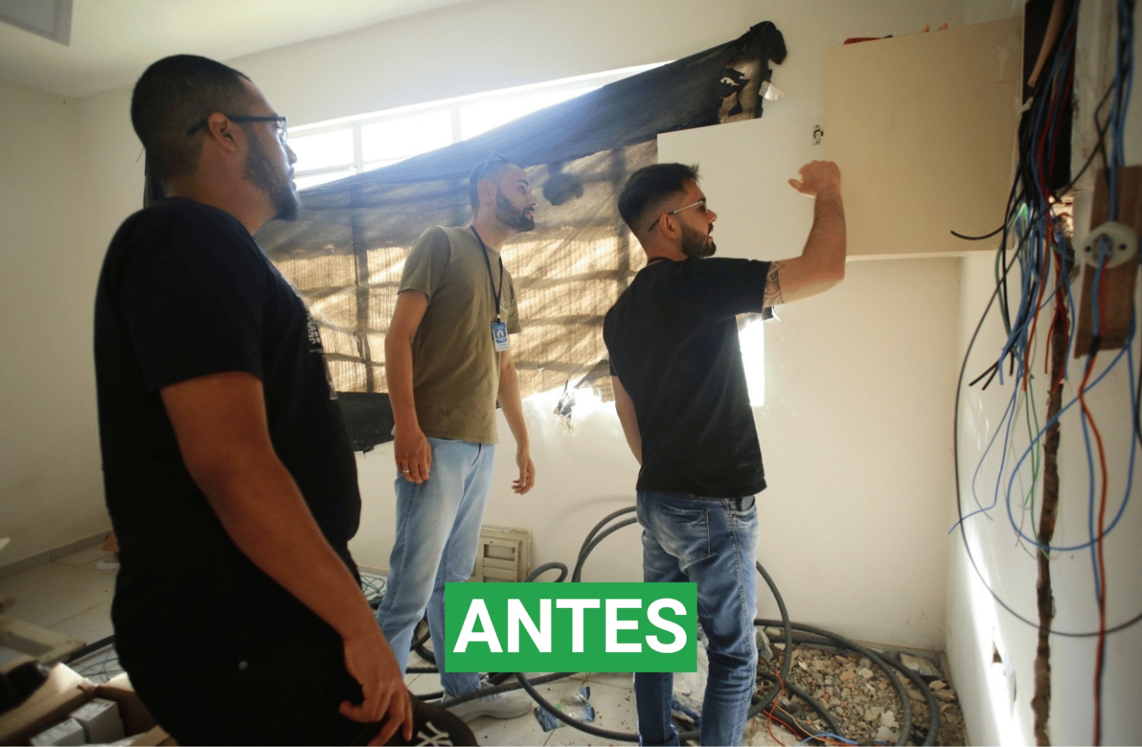 Ao assumir a situação, a equipe da Secretaria de Assistência Social realizou um diagnóstico completo do prédio. A reforma anterior não havia sido concluída pela empresa responsável, o que provocou demandas jurídicas. Além disso, o espaço apresentava graves danos: toda a fiação elétrica havia sido furtada, a caixa d’água estava com vazamento, comprometendo paredes, pisos, e o imóvel estava bem deteriorado.