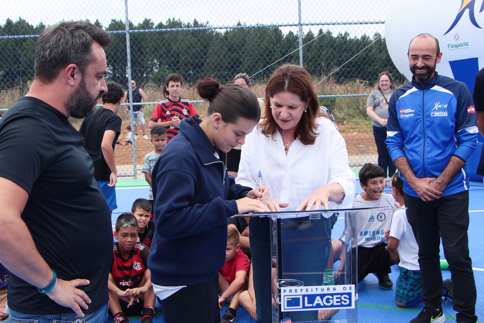 Durante a solenidade também foi assinada a ordem de serviço para a construção de uma quadra poliesportiva no bairro São Luiz. A obra terá investimento total de R$ 457 mil, sendo R$ 425 mil provenientes de emenda parlamentar do deputado estadual Marcius Machado, por meio de recursos financeiros do Governo do Estado de Santa Catarina, além de contrapartida de R$ 32 mil da Prefeitura de Lages.