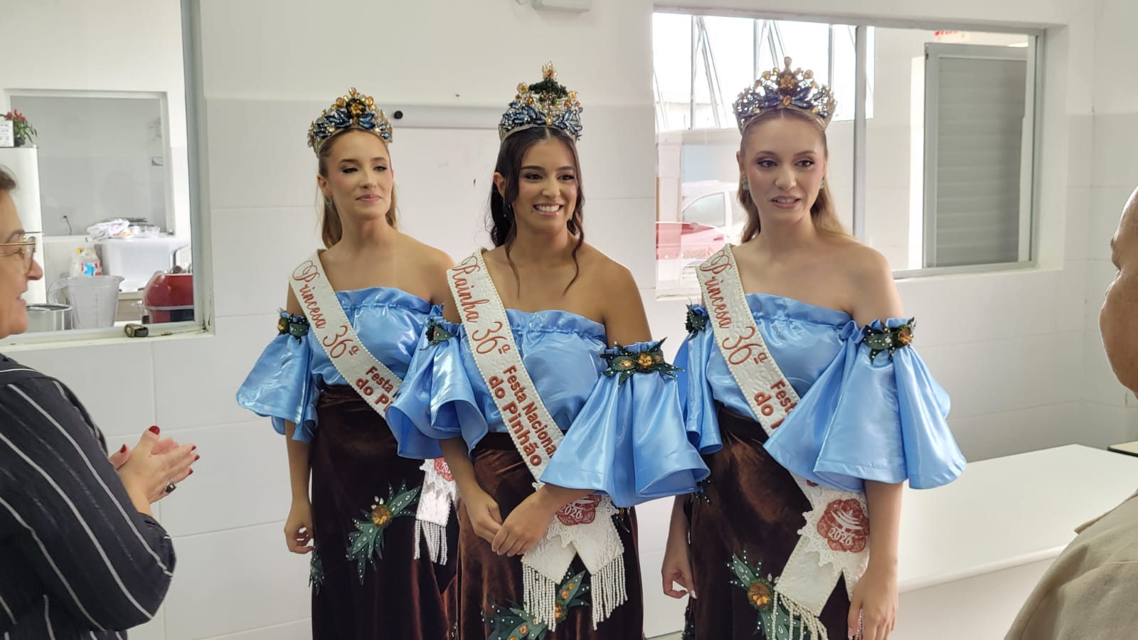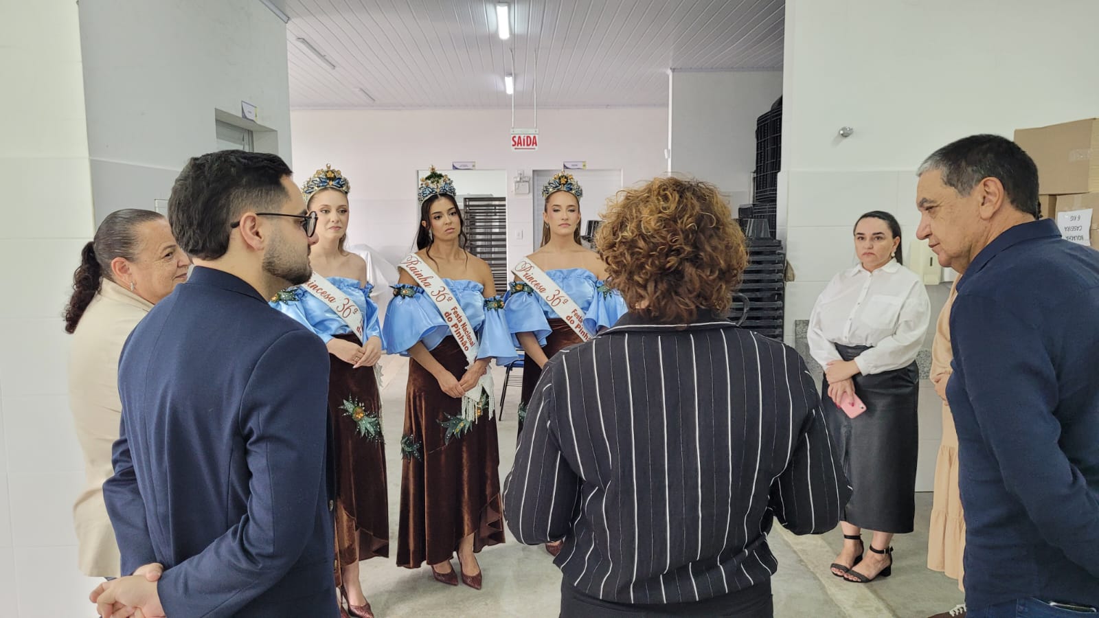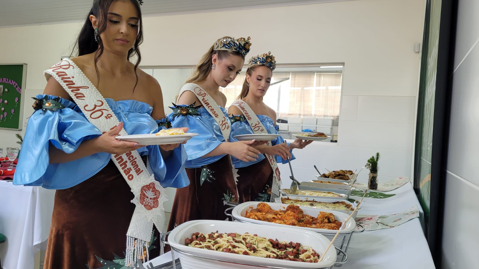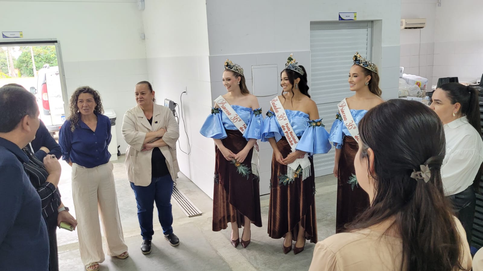 A realeza da 36ª Festa Nacional do Pinhão visitou, nesta quinta-feira (12 de março), as instalações do Banco de Alimentos de Lages, um dos principais equipamentos da rede de assistência social do município. A rainha Maria Júlia Branco da Silveira, a 1ª princesa Maria Luisa Furtado Boeno e a 2ª princesa Emilie da Silva Pereira foram recepcionadas com um almoço especial e tiveram a oportunidade de conhecer de perto a estrutura e o funcionamento do espaço.