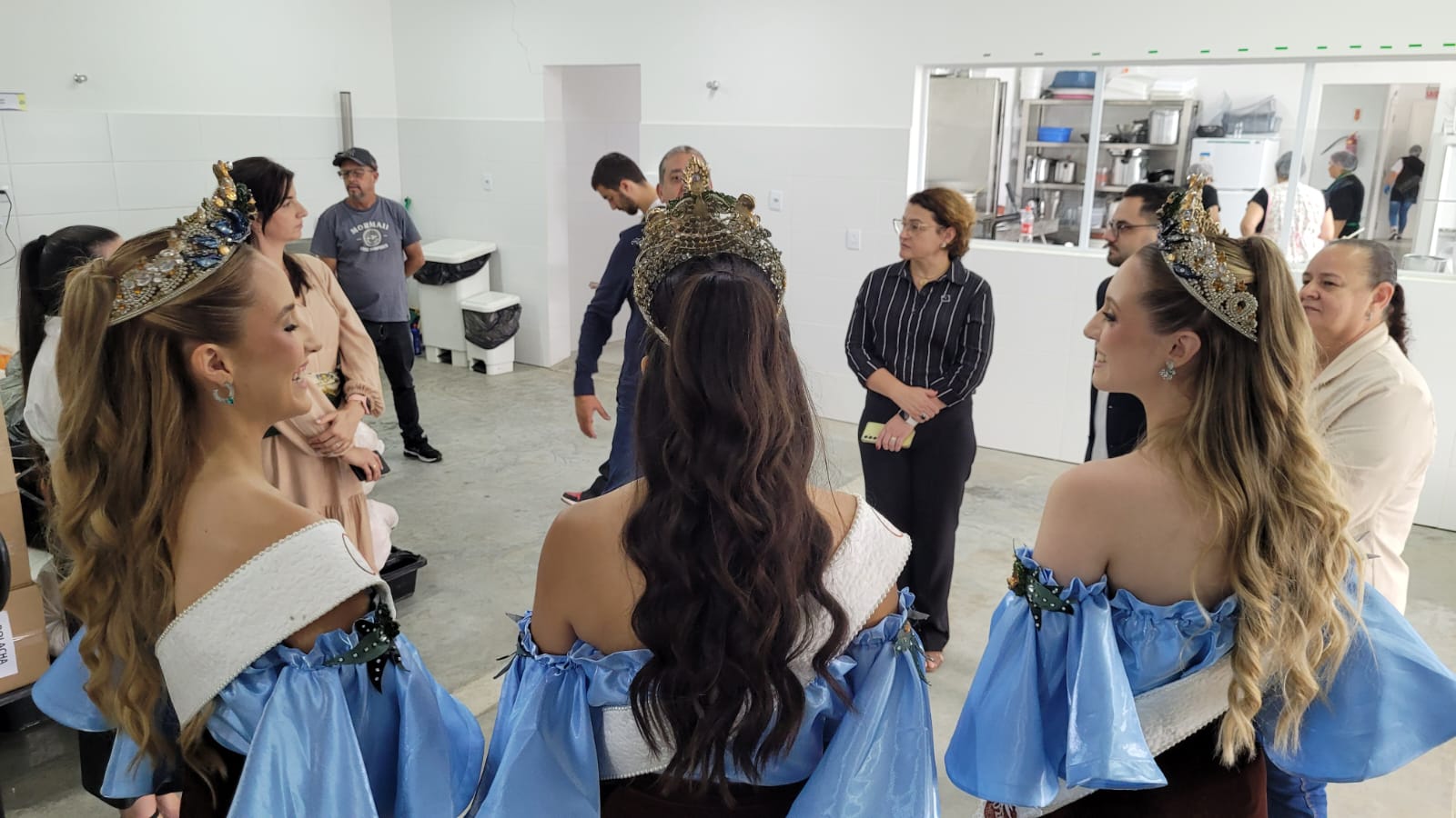 Rainha e princesas da festa foram recebidas com almoço especial e acompanharam de perto o funcionamento do equipamento da assistência social que já distribuiu quase 30 toneladas de alimentos em 2026