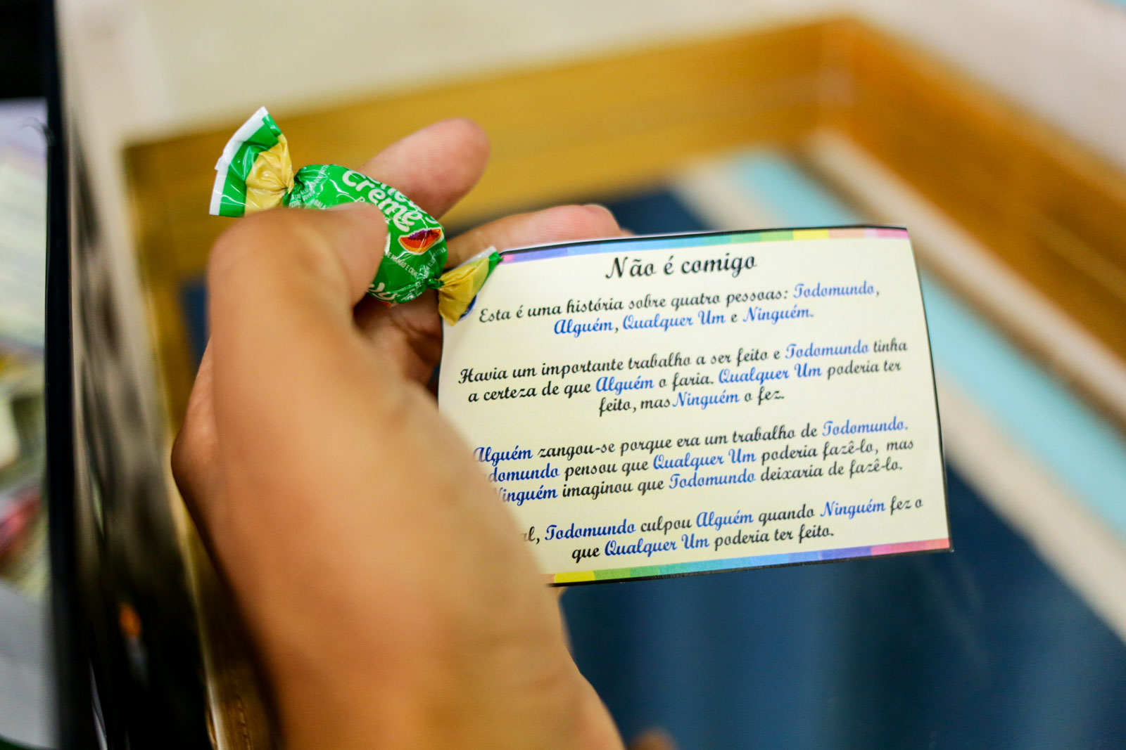 As estagiárias receberam orientações referentes à jornada de trabalho, atribuições das atividades, noções básicas de cuidados com as crianças, relação adequada com professores e responsáveis, entre outros tópicos abordados.