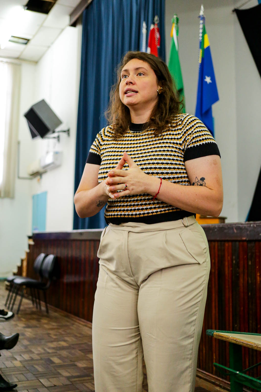 Para o secretário municipal da Educação, professor Dr. Cristian de Oliveira, as estagiárias são peças fundamentais no dia a dia das unidades de ensino. “A Educação Infantil, a primeira infância, é a etapa mais importante da educação do município e prioridade da gestão da prefeita Carmen Zanotto. O combate à violência contra a mulher deve, sim, começar desde cedo, e nossos profissionais nas unidades de ensino devem estar atentos aos sinais de agressão física e psicológica. Formações como a realizada hoje, em parceria com a Secretaria de Políticas para a Mulher e para a Pessoa Idosa, são fundamentais para alterarmos uma triste realidade”, enfatiza o secretário Cristian.