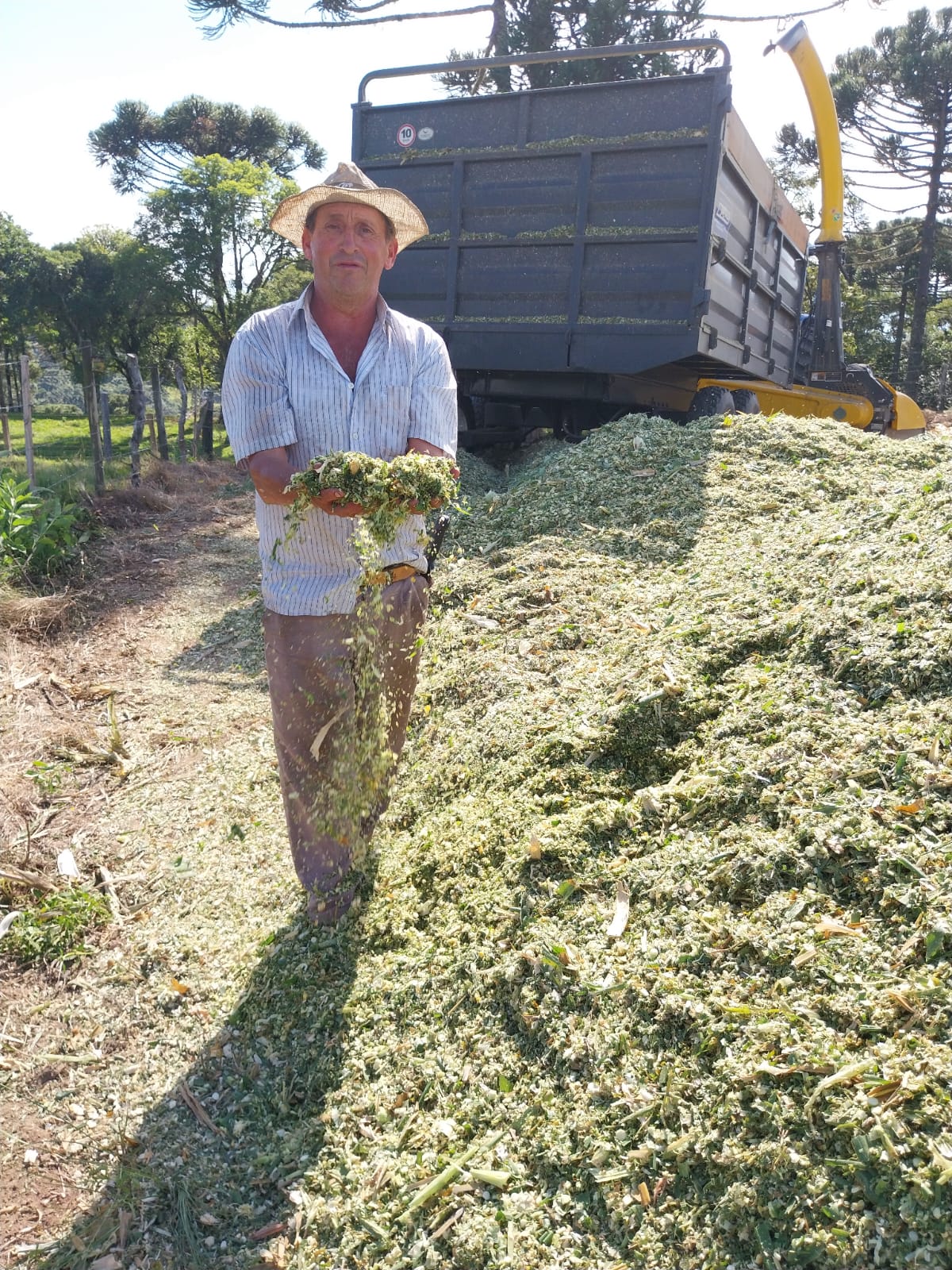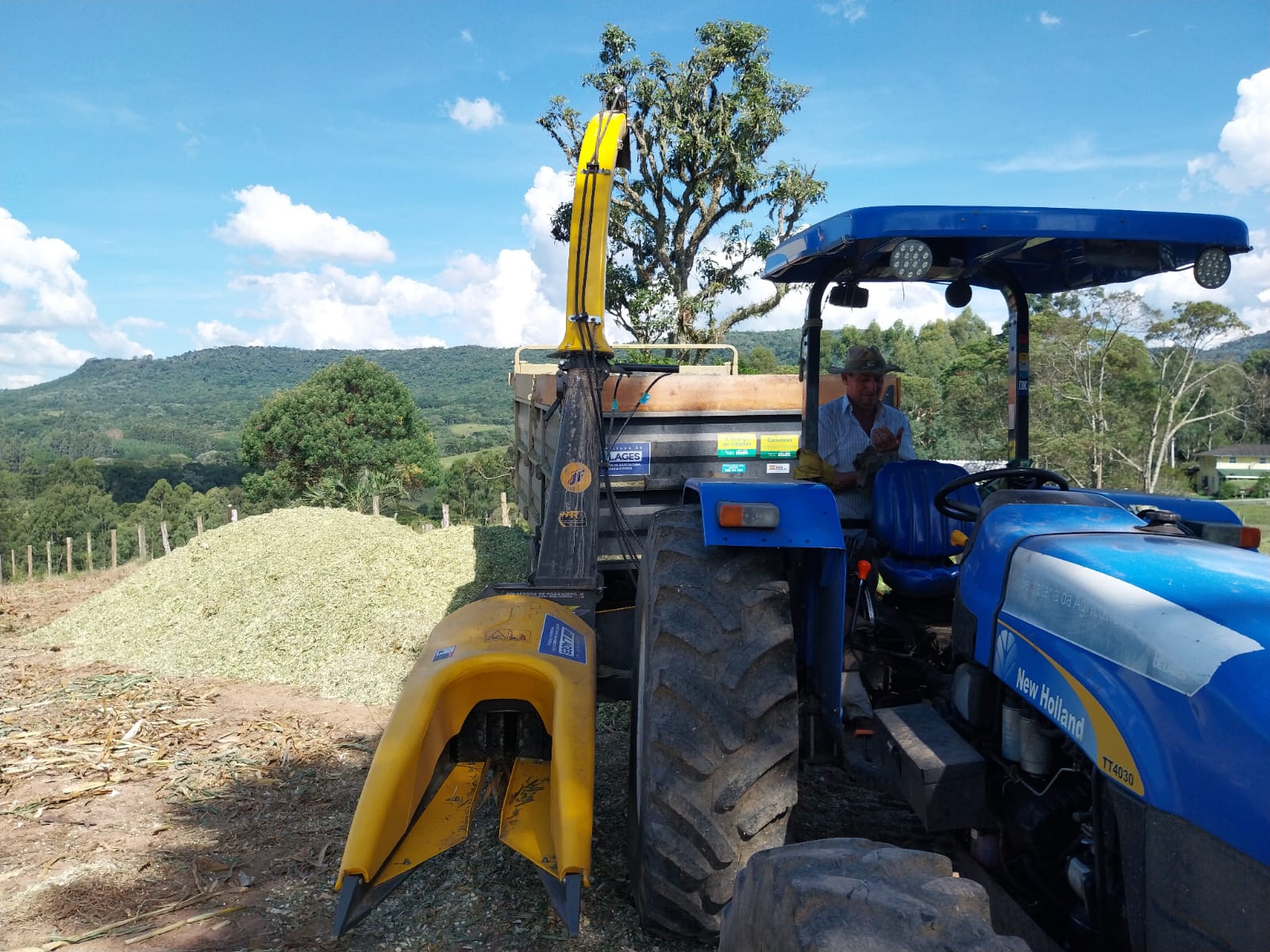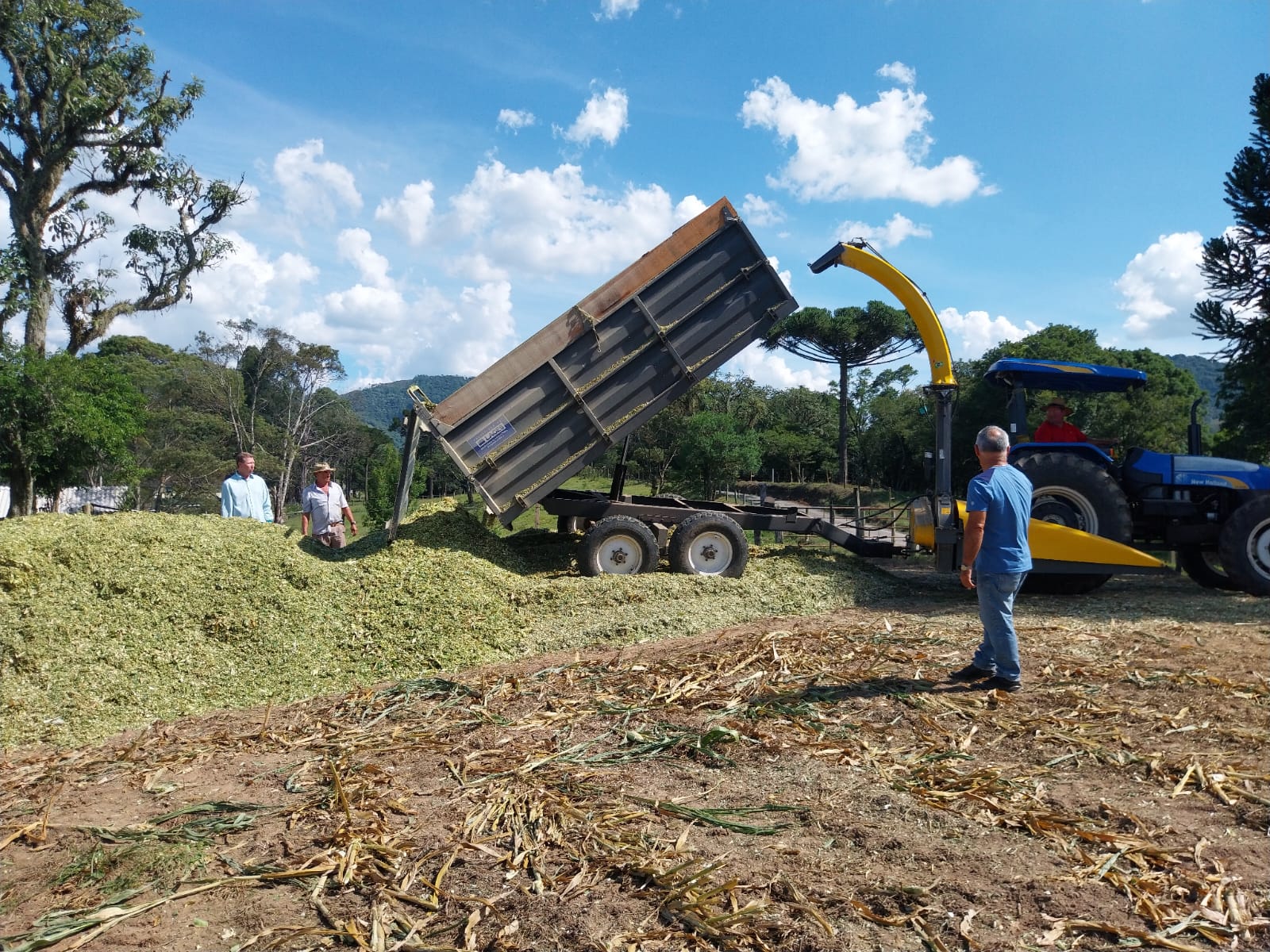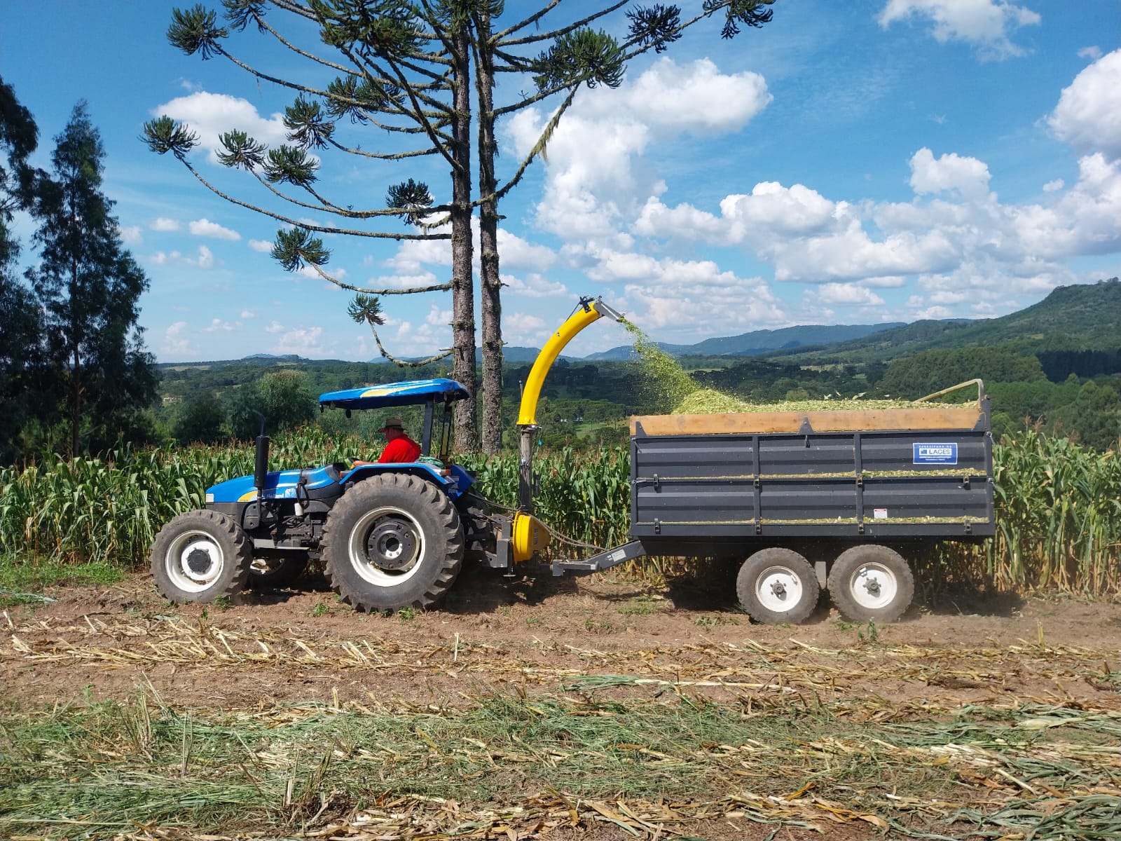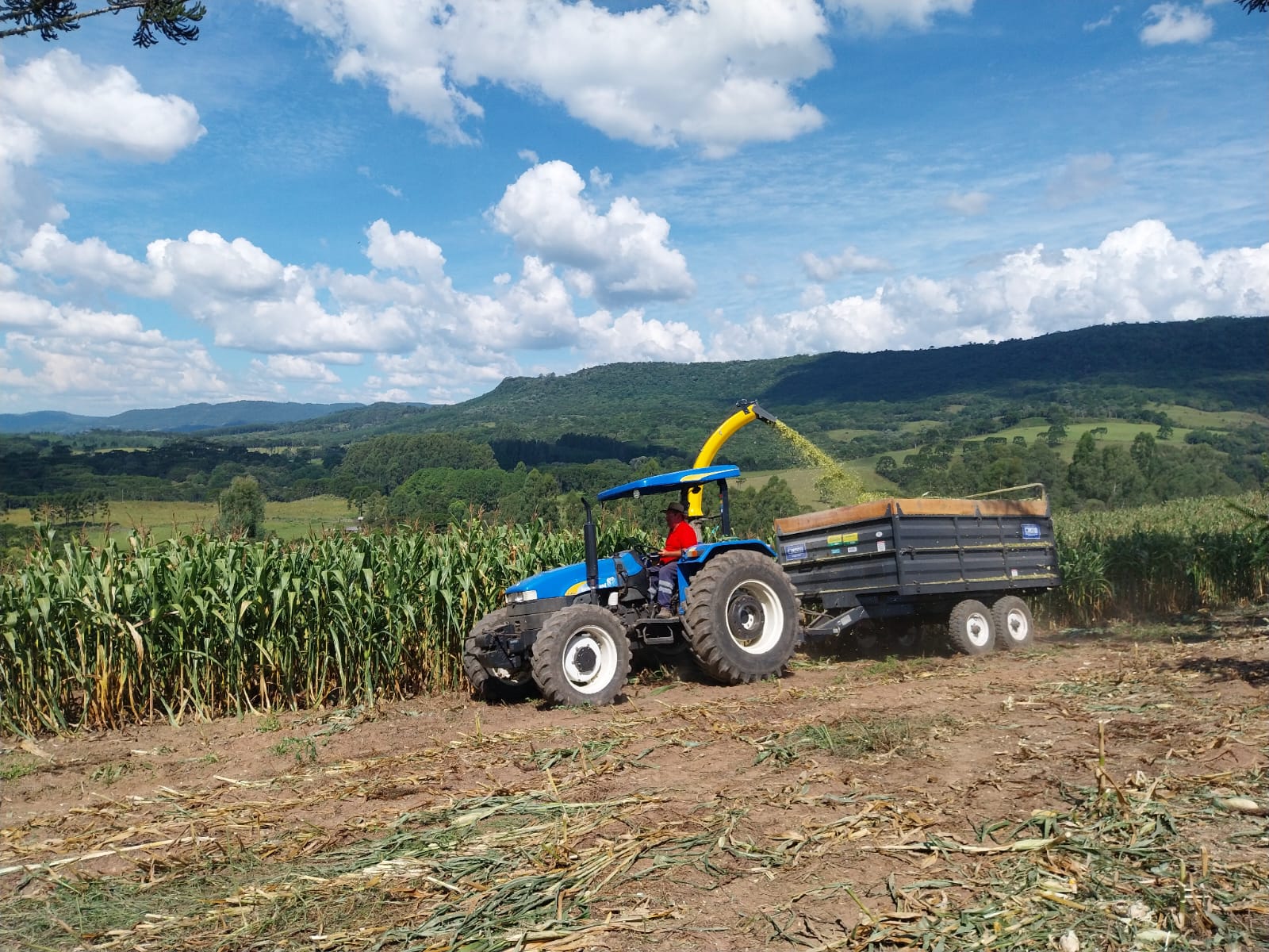 Nesta segunda quinzena do mês de março de 2026, na localidade da Lomba, em Macacos (Capela São Francisco), na propriedade de Rogério da Silva Muniz, uma nova ensiladeira de milho, acoplada a um trator, foi utilizada na produção de silagem. A lavoura de milho, com área de um hectare, havia sido plantada no mês de outubro de 2025.