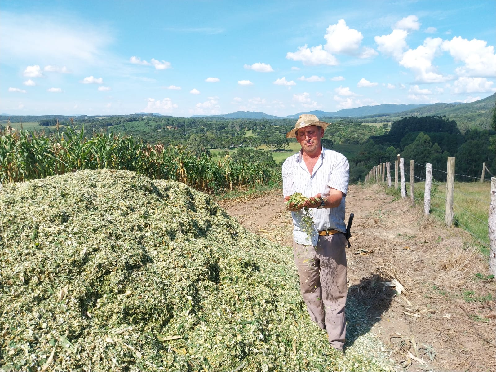 “Em poucos dias, com esses equipamentos, posso fazer a colheita do milho diretamente para a silagem, para tratar o gado no inverno. Se não tivesse esse maquinário, teria de contratar umas três pessoas e levaria muito mais de uma semana para fazer todo o serviço”, diz Rogério Muniz.
