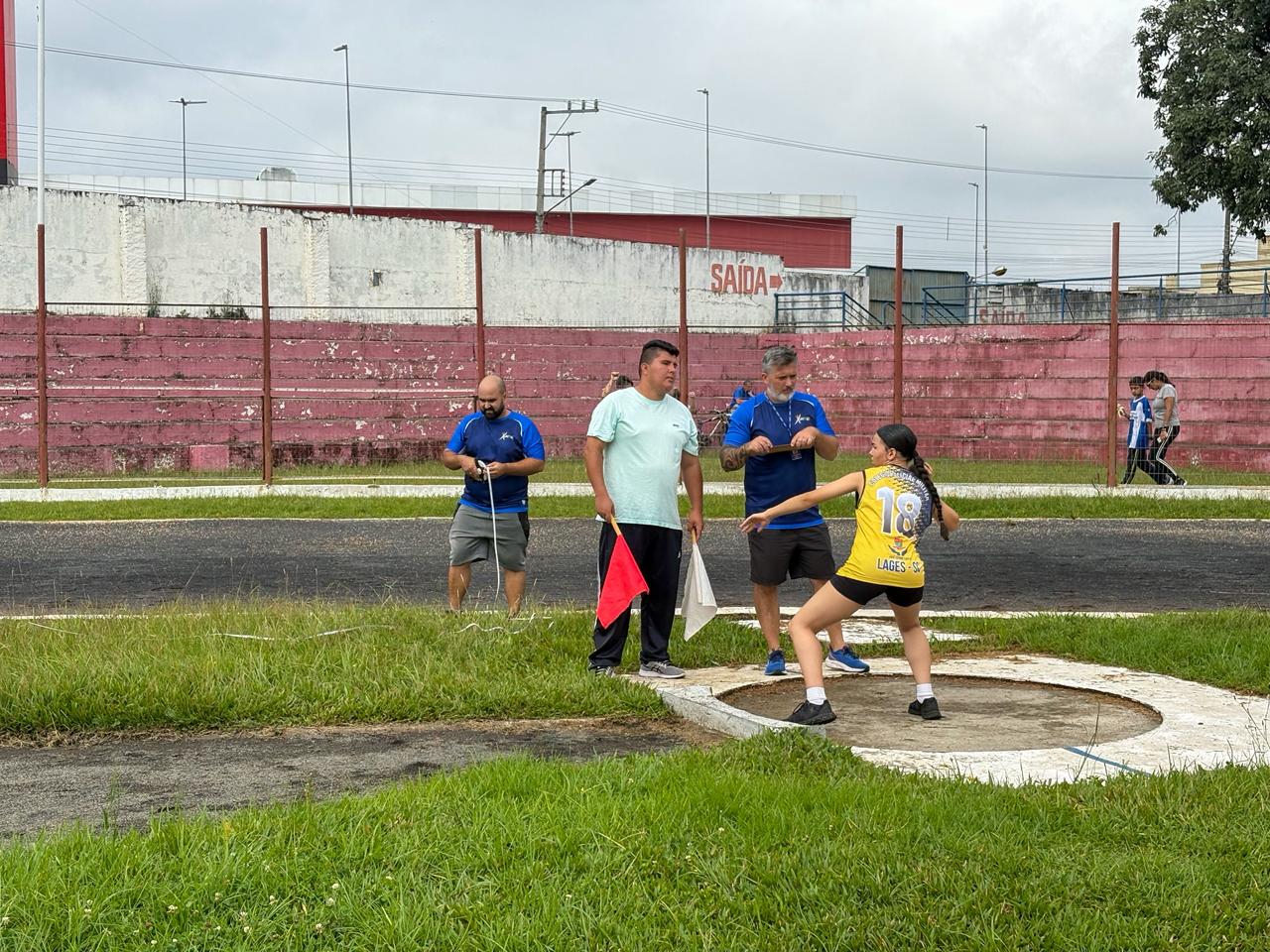 O atletismo dos Jogos Esportivos de Lages (JEL) - Edição Escolar, na faixa etária de 12 a 14 anos, iniciou nesta quinta-feira (19 de março), no Estádio Municipal Vidal Ramos Júnior. O número de inscritos, que chegou a 293 estudantes, superou a expectativa, mostrando a adesão das escolas à modalidade.