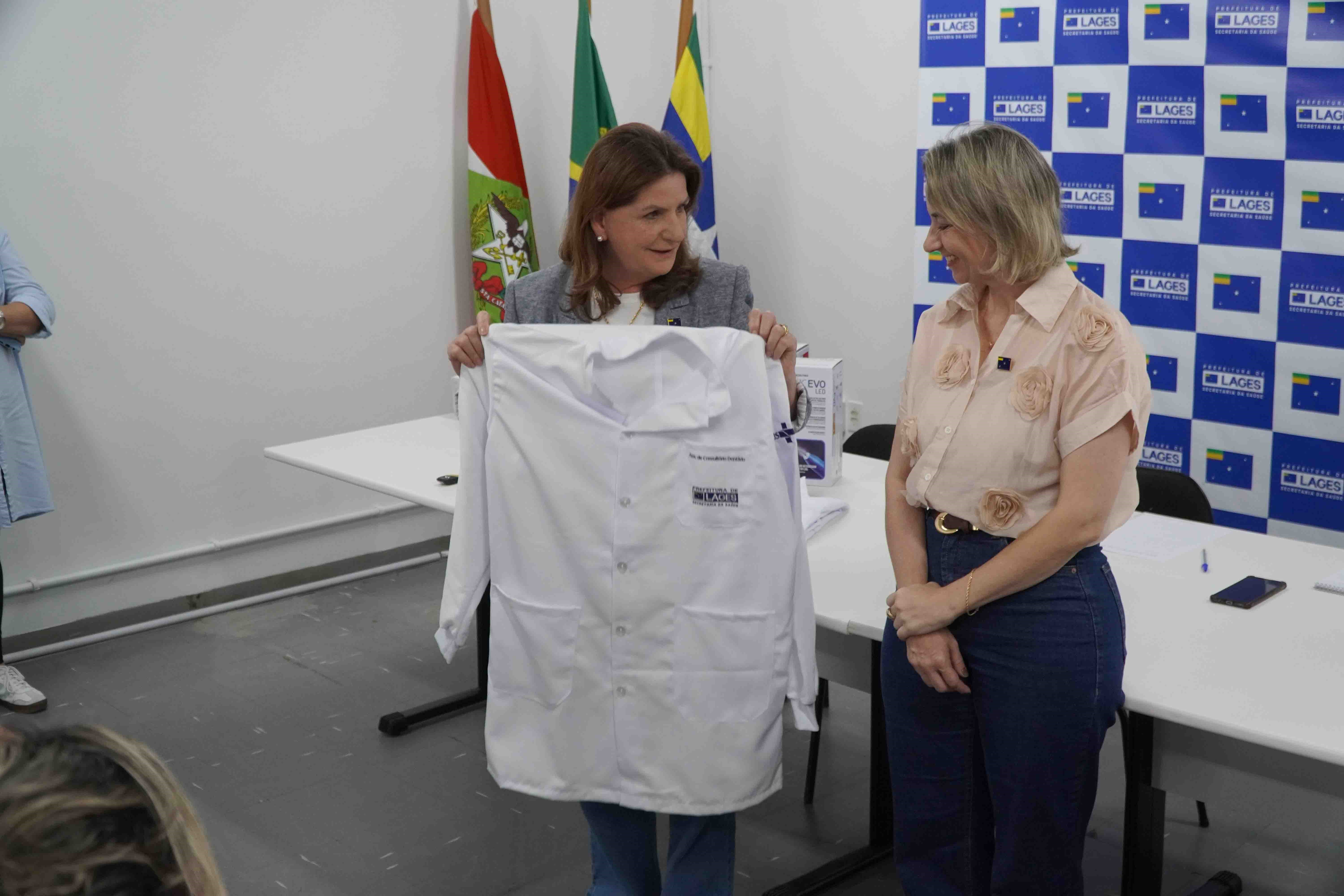 Durante o ato, também foram entregues uniformes para os profissionais da Diretoria de Saúde Bucal do Centro de Especialidades Odontológicas, adquiridos por meio da emenda parlamentar de autoria da prefeita ainda como deputada federal, no valor de 350 mil, destinada à aquisição de uniforme e vestuários para os servidores.