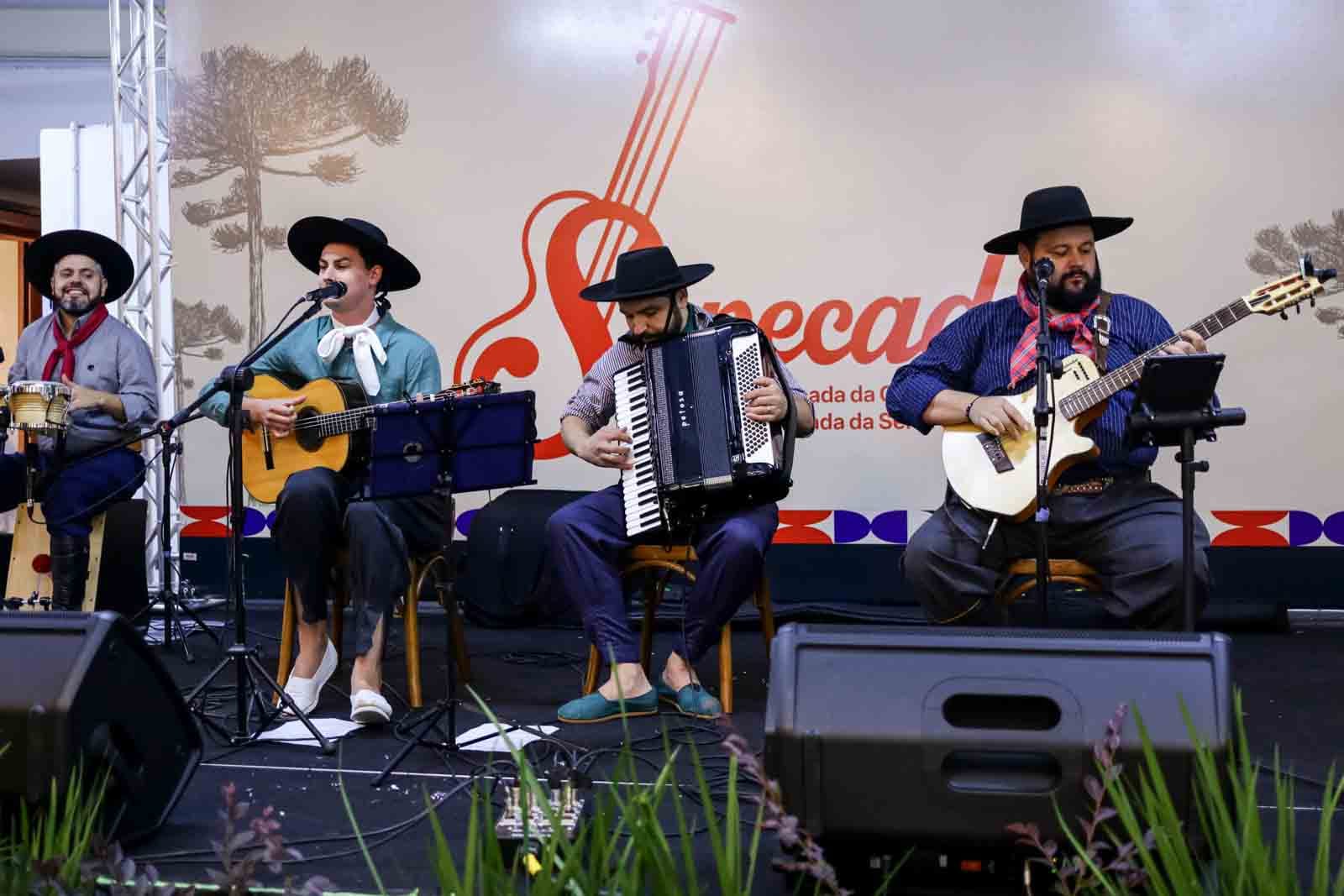 A abertura ocorreu com show do grupo D’este Rincão, seguido do início das análises por parte da comissão julgadora. A realeza da 36ª Festa Nacional do Pinhão também estive presente: a Rainha Maria Júlia Branco da Silveira e princesas Maria Luisa Furtado Boeno e Emilie da Silva. A triagem seguirá nesta sexta-feira e sábado (3 e 4 abril), quando serão definidas as 16 músicas classificadas para cada festival.