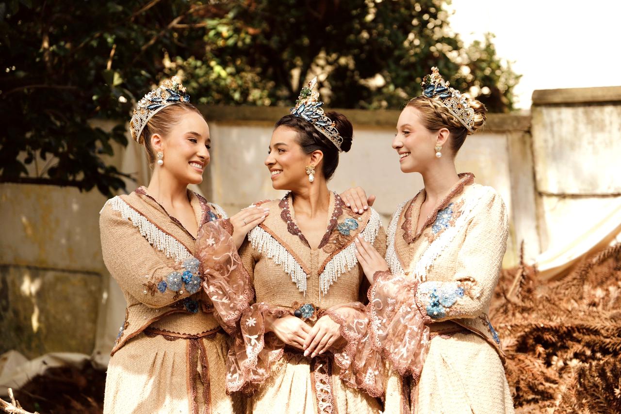 A Rainha Maria Júlia e as Princesas Maria Luíza e Emilie da Silva carregam não apenas os trajes, mas o significado de uma festa que atravessa gerações.