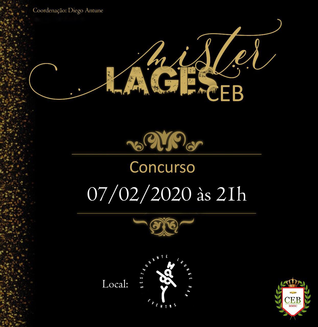 O concurso é franqueado ao Mister SC CEB e ao Mister Brasil CNB e será realizado no dia 7 de fevereiro no Happy Lounge Ba,r a partir das 21h. Segundo os organizadores a proposta do evento é o enaltecimento da beleza do homem lageano. O ganhador representará Lages no maior concurso de beleza masculina do Estado, o Mister Santa Catarina CEB 2020 em Balneário Camboriú, no mês de agosto.