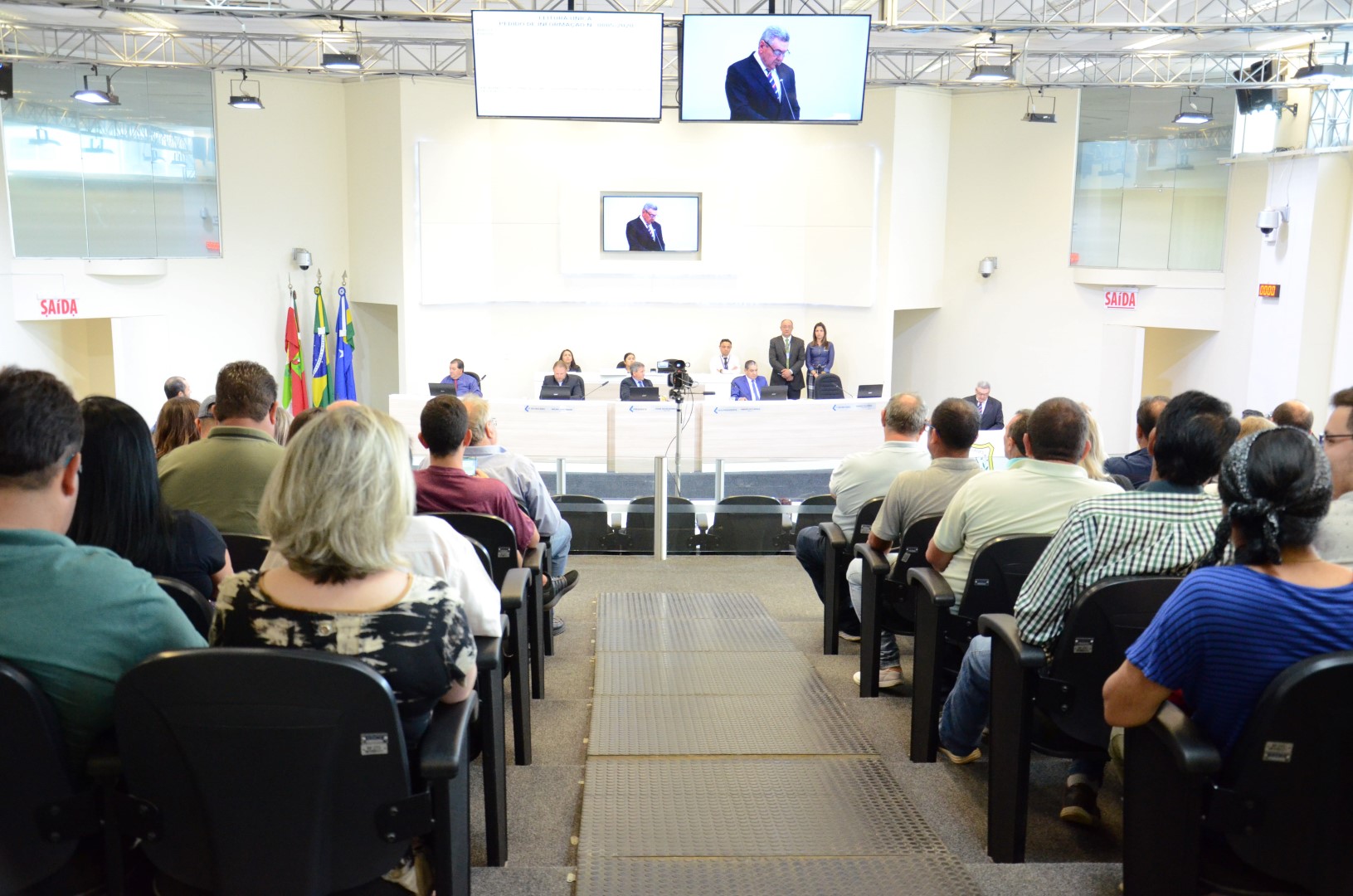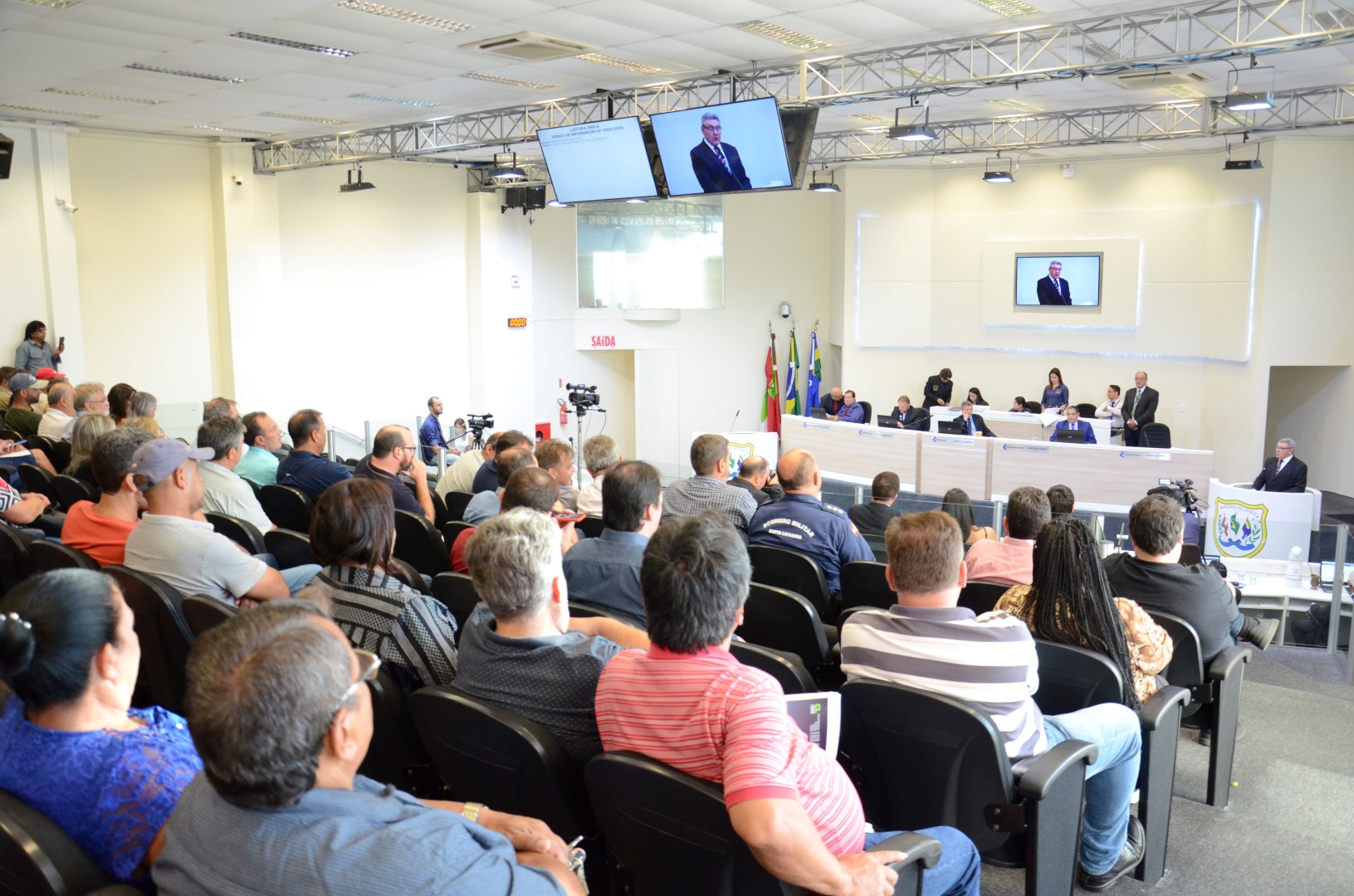 No final de sua mensagem o prefeito Ceron agradeceu também a parceria e relação harmoniosa com todas as instituições / Fotos: Deise Ribeiro – Câmara de Vereadores