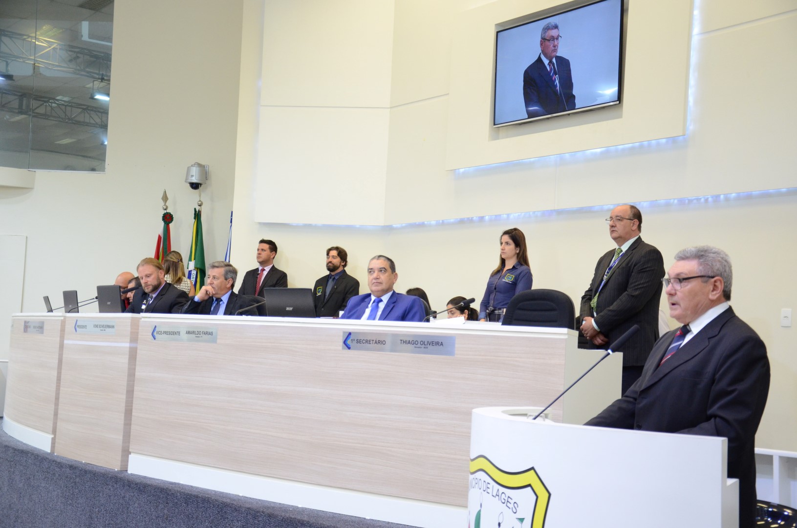 O prefeito usou a tribuna do legislativo para ler sua mensagem e fez um relato das ações da Administração Municipal no ano de 2019. Iniciou dizendo que “chega ao último ano de mandato com a certeza de que muito fez pela cidade”.