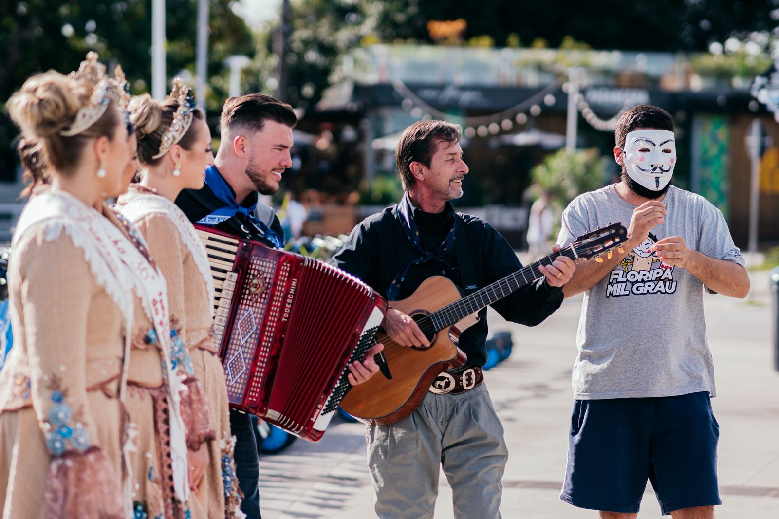 A rainha Maria Júlia Branco da Silveira também destacou a receptividade na capital. “Foi um dia muito especial, levando um pouco da nossa cultura e da tradição da Serra para Florianópolis. A recepção em cada veículo demonstra o quanto a Festa é reconhecida e aguardada, e isto nos motiva ainda mais a fazer este convite para que todos vivenciem esta experiência”, conclui.