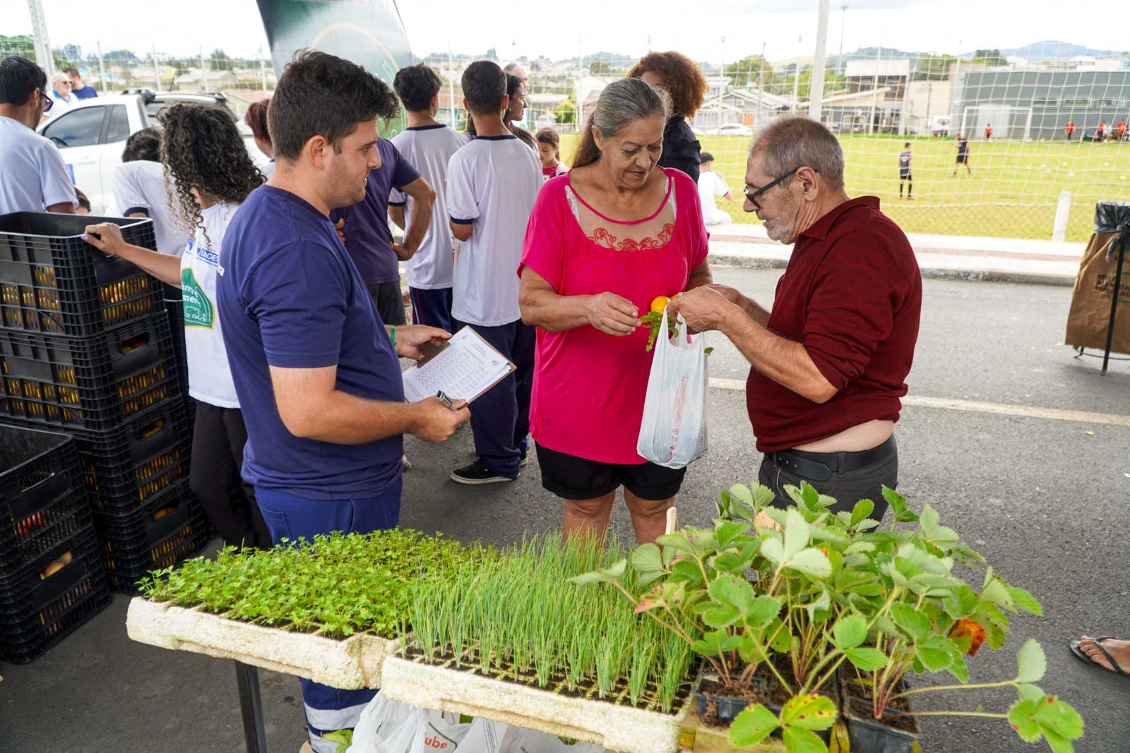 Entre as ações desenvolvidas, a Secretaria da Assistência Social participou com o Banco de Alimentos, realizando a distribuição de frutas para as famílias atendidas. Já a Secretaria da Agricultura, Pecuária e Pesca contribuiu com a entrega de mudas de hortaliças como alface, rúcula, cebola e salsa, couve, manjericão e mudas de morango, incentivando práticas mais saudáveis e sustentáveis. A Secretaria da Saúde também teve atuação expressiva na prevenção da comunidade. A Secretaria de Indústria, Comércio e Inovação também atendeu a população com os cadastros nas vagas dos interessados no Banco do Emprego.