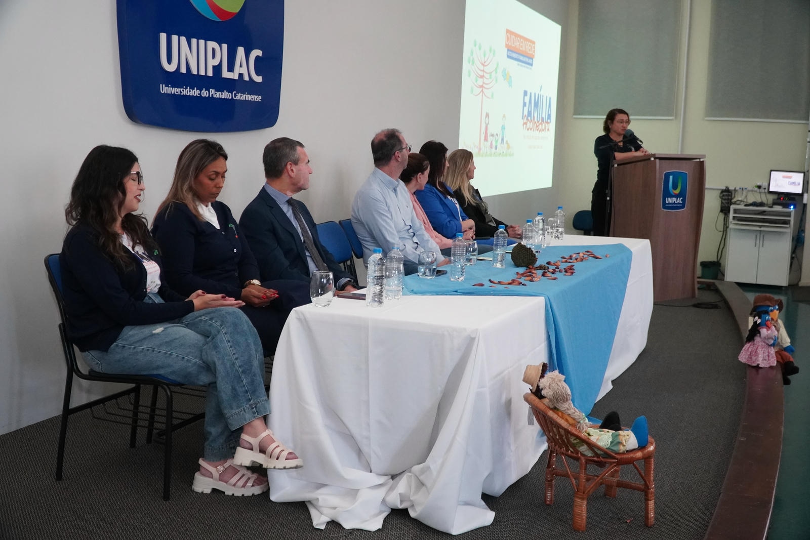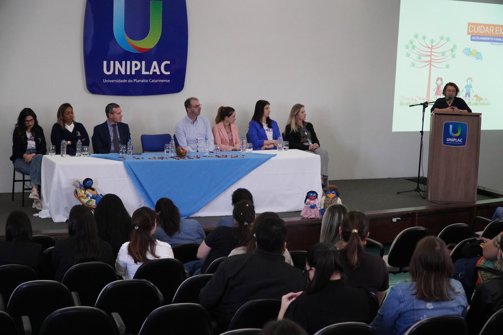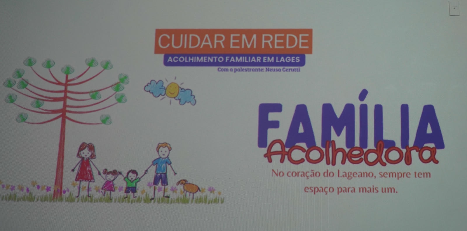 A programação contou com apresentação artística da Associação Lageana de Assistência Social para Crianças e Adolescentes em Situação de Vulnerabilidade Social/Associação Lageana de Assistência ao Menor (Alam), e a palestra ministrada por Neusa Eli Figueiredo Cerutti, do Instituto Acolher, com reflexões sobre a importância do cuidado compartilhado e do acolhimento em ambiente familiar. “O Serviço da Família Acolhedora possibilita que crianças e adolescentes afastados temporariamente de suas famílias por medida judicial sejam recebidos por famílias cadastradas, garantindo um ambiente familiar, com atenção individualizada, afeto e segurança. A medida é provisória e segue as diretrizes do Estatuto da Criança e do Adolescente (ECA), não se configurando como adoção”, explica Neusa.