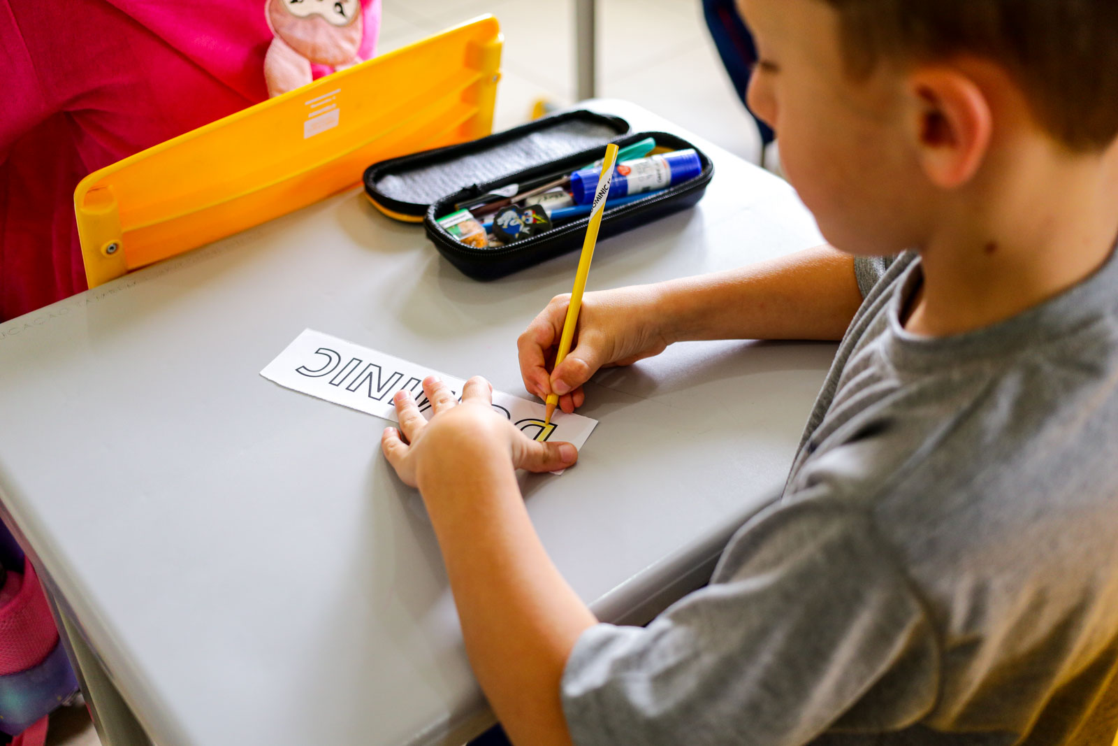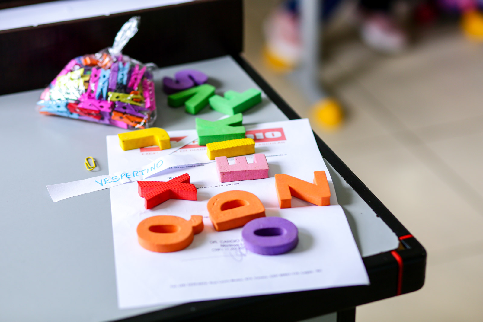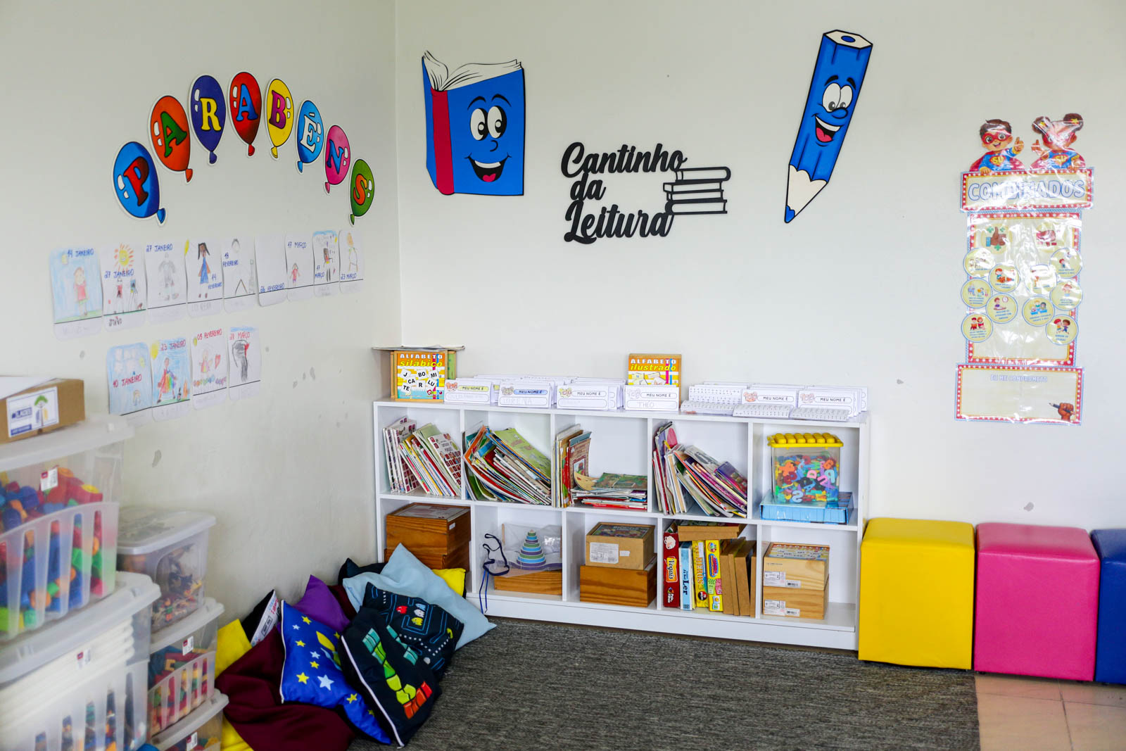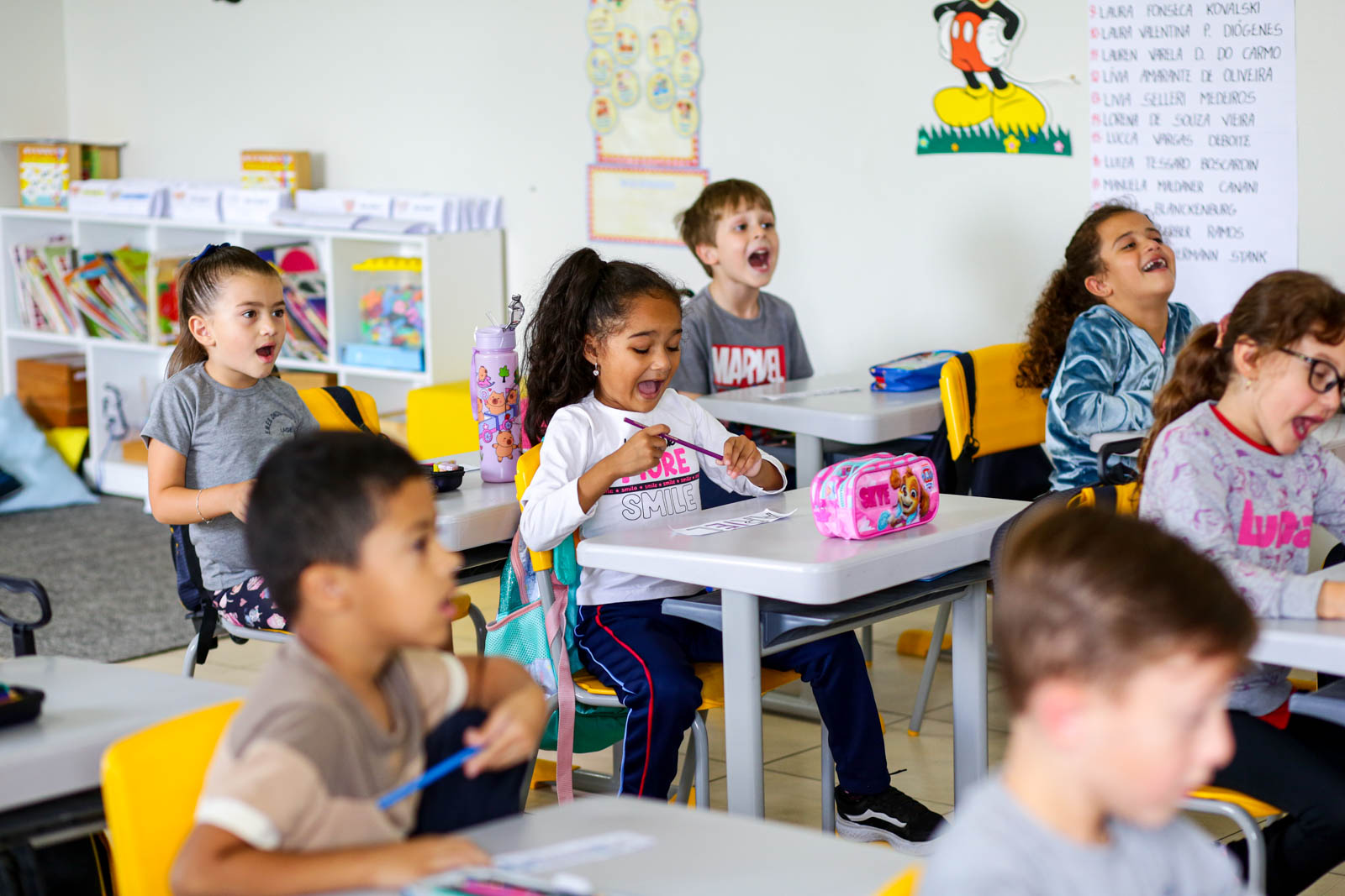 Entre as estratégias adotadas estão leituras compartilhadas e o “Bingo dos Nomes”, no qual as crianças completam suas cartelas conforme as letras são sorteadas. “Trabalho bastante com o nome para que eles possam se conhecer, entender o nome de cada criança. A gente tem o nome na agenda, nos cadernos. Então, eles vão ter aquele entendimento da primeira letra. Quando percebem que o nome do Antony começa com ‘A’, mas que há outro colega com a mesma inicial e precisam olhar a letra seguinte, ocorre o grande salto cognitivo”, finaliza Simara.