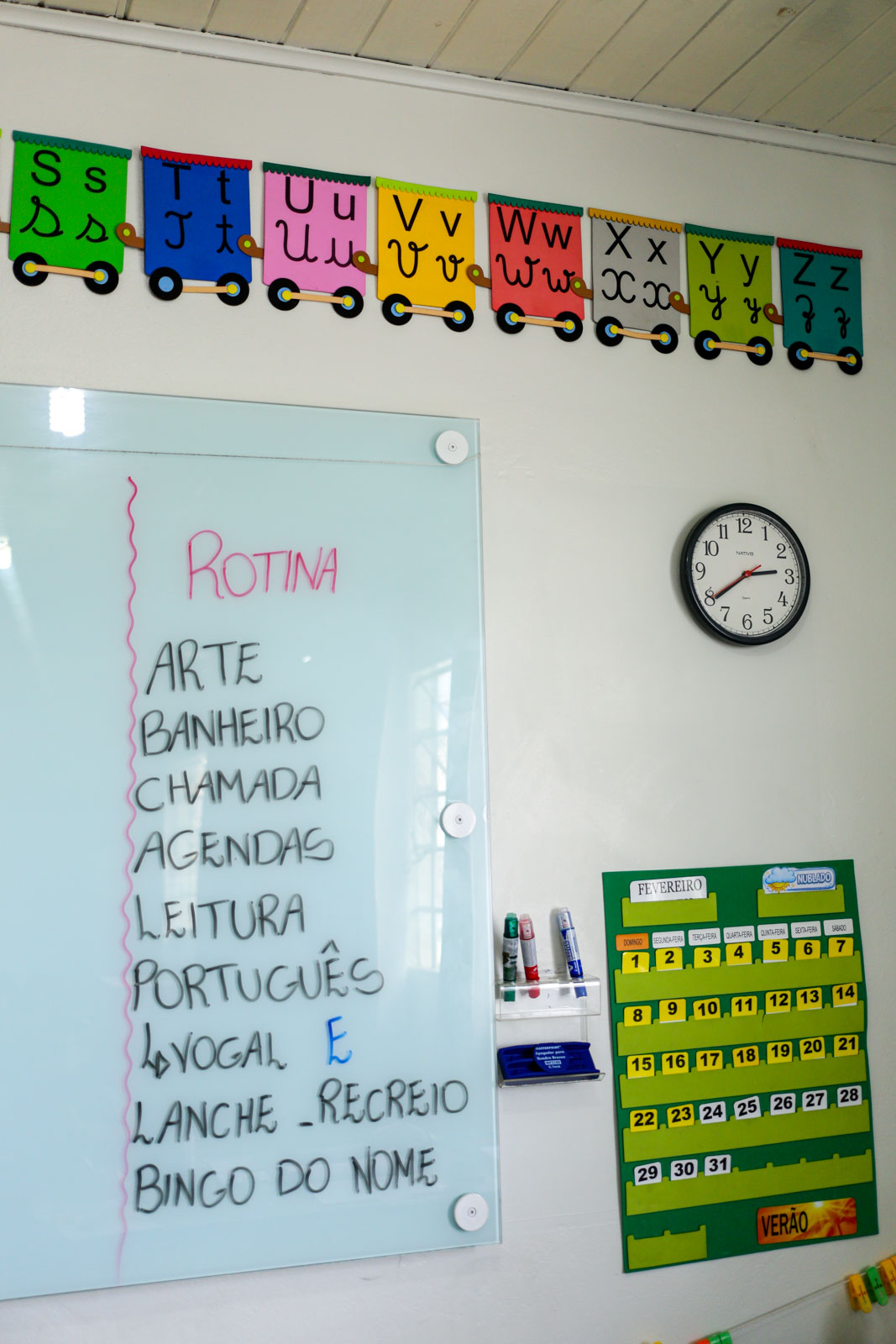 A alfabetização é desenvolvida de maneira heterogênea, respeitando o ritmo individual. “É um trabalho de formiguinha. Como a turma tem níveis desiguais, uns nas vogais, outros no alfabeto, o trabalho é constante de ir e voltar” descreve a docente.
